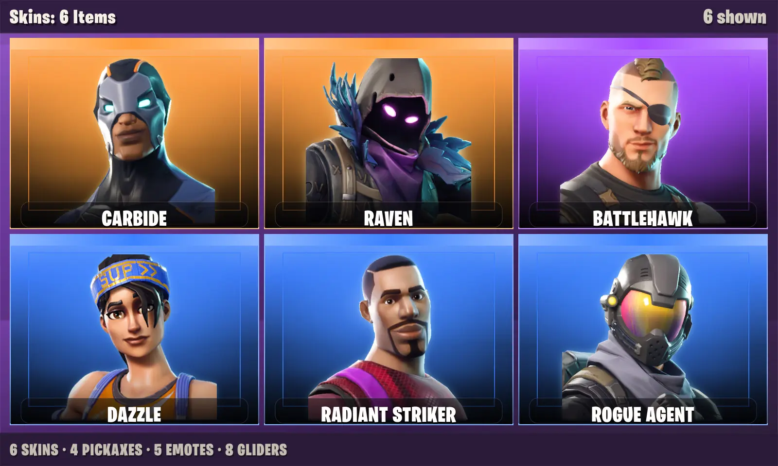⭐️ 6 Skins | Rogue Agent + Carbide + Raven + Battlehawk + Dazzle + Radiant Striker | 350 VB