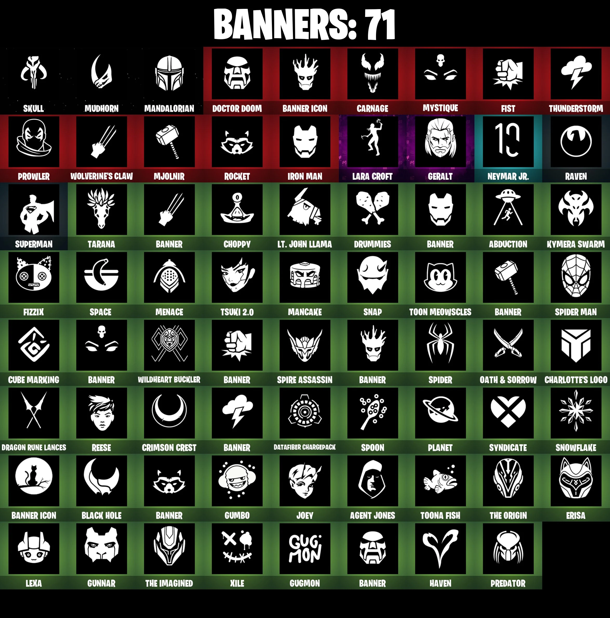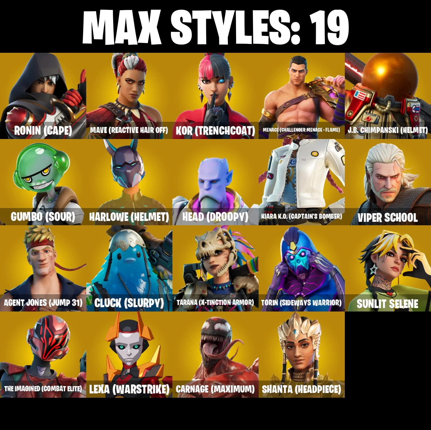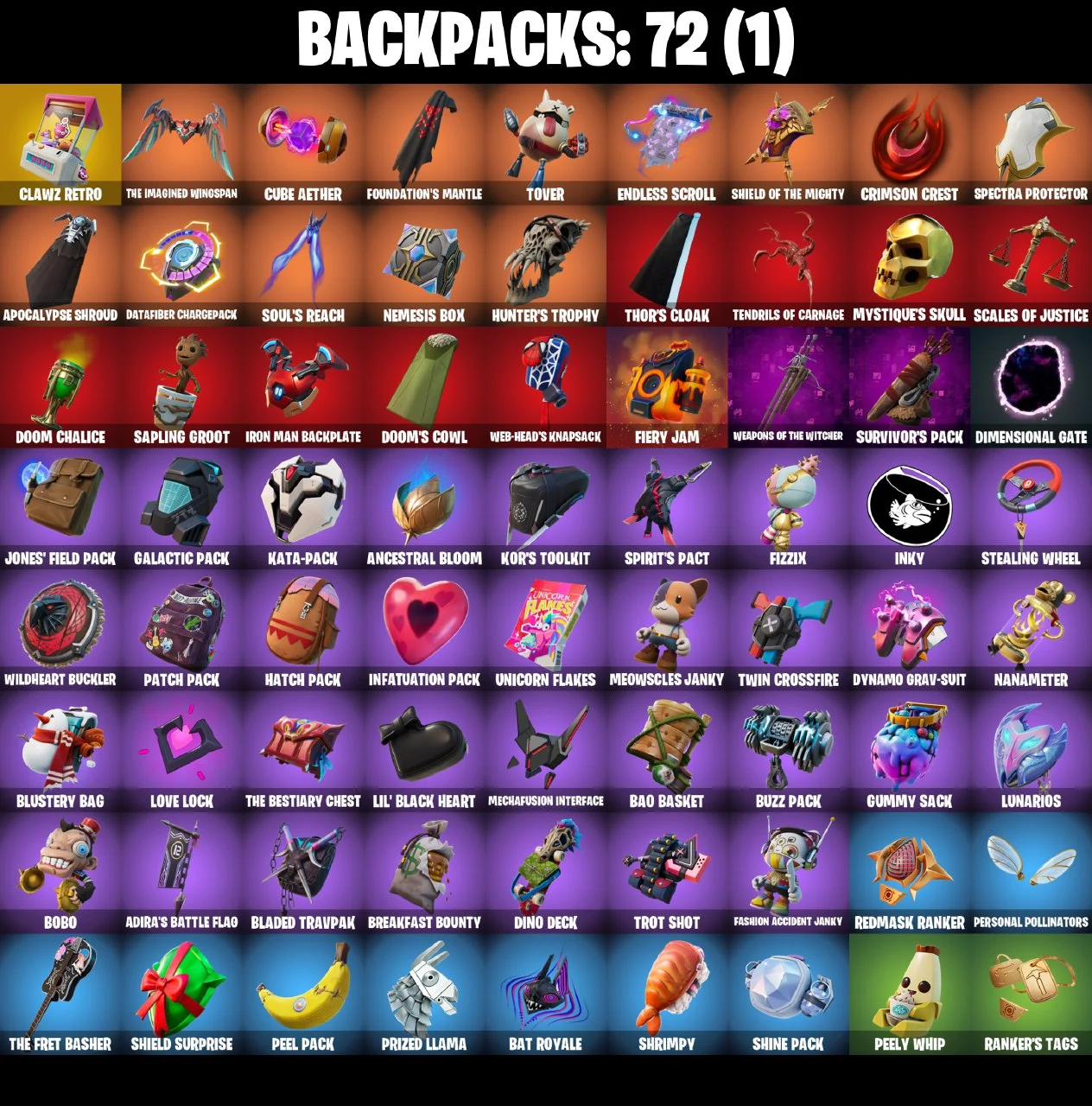 64 SKINS | RONIN (CAPE) | MENACE (CHALLENGER MENACE ⸱ FLAME) | HEAD (DROOPY) | TORIN (SIDEWAYS WARRIOR) | THE IMAGINED (COMBAT ELITE) | PREDATOR | JOEY | RAZ | THE ORIGIN | SPIRE ASSASSIN | THE FOUNDATION | SNAP | MANDALORIAN| PC/PSN/XBOX/NINTENDO |