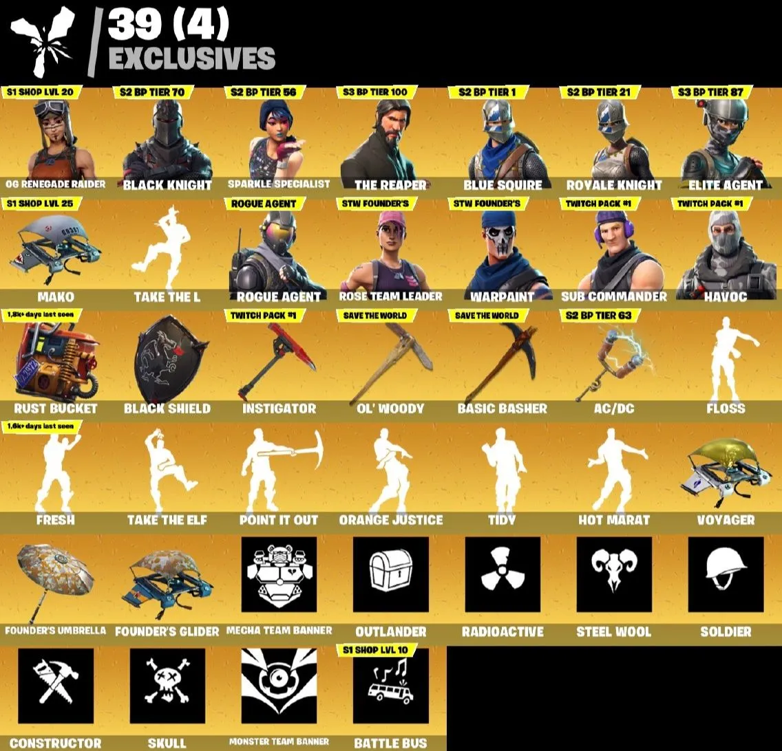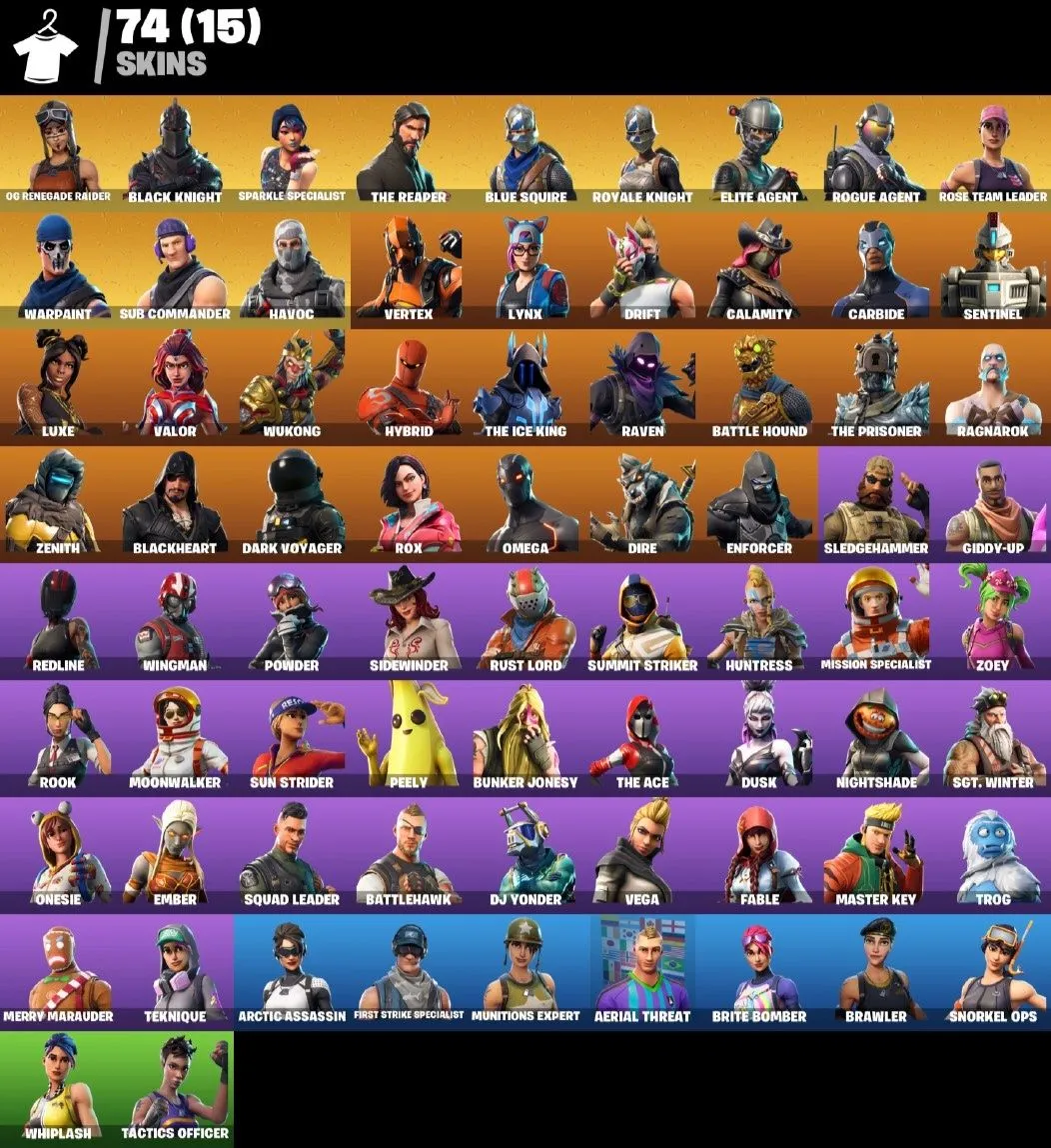 74 skins | OG STW | OG Renegade Raider | Black Knight | Sparkle Specialist | The Reaper | Blue Squire | Royale Knight | Elite Agent | Mako | 1150 VB