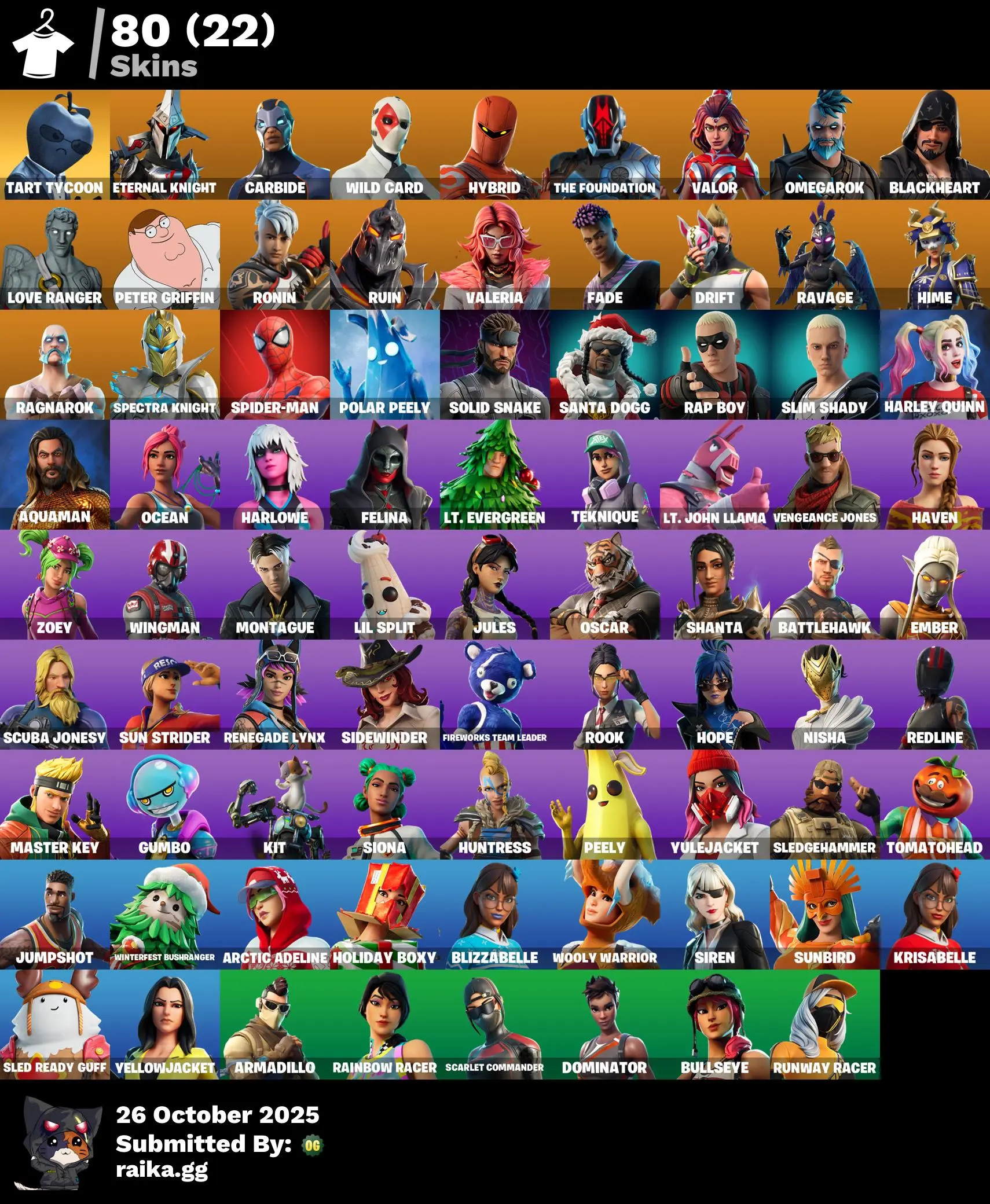 80 skins | Orange Justice🎃Verve🎃Blackheart🎃Wild Card🎃Astroworld Cyclone🎃Take The Elf🎃Carbide🎃Astro Jack🎃Hime🎃Ruin🎃Drift🎃Eternal Knight🎃Ravage🎃Valeria🎃Valor🎃Nanner Ringer🎃Hot Marat🎃Rage🎃The Foundation🎃Fade🎃Hybrid🎃Omegarok D3884