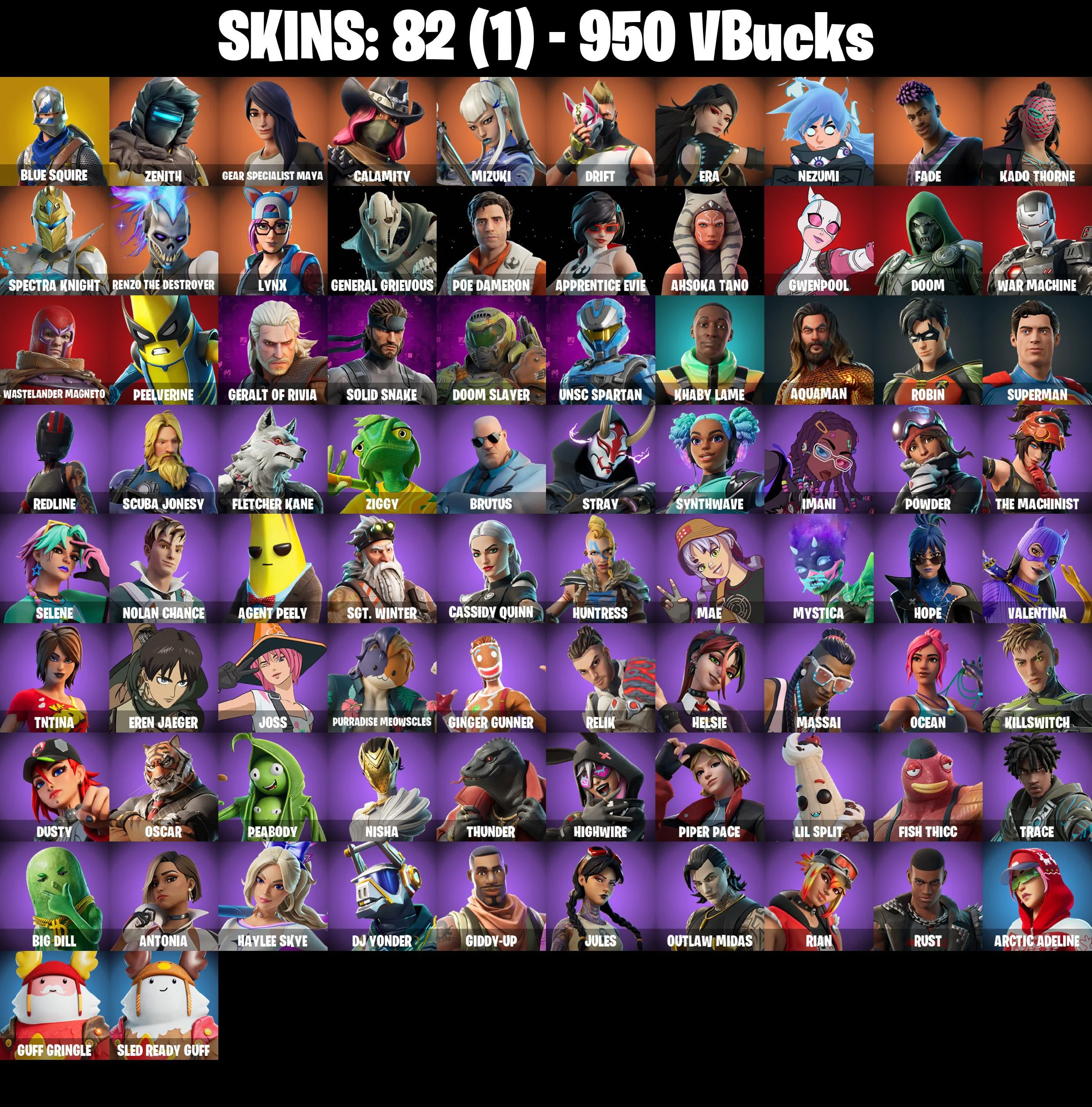 🎆82 SKINS ⚡️PC/XBOX⚡️ BLUE SQUIRE 👑 ZENITH 👑 GEAR SPECIALIST MAYA 👑 CALAMITY 👑 MIZUKI 👑 DRIFT 👑 ERA 👑 NEZUMI 👑 FADE 👑 KADO THORNE ⚡️ 950 VB #M642