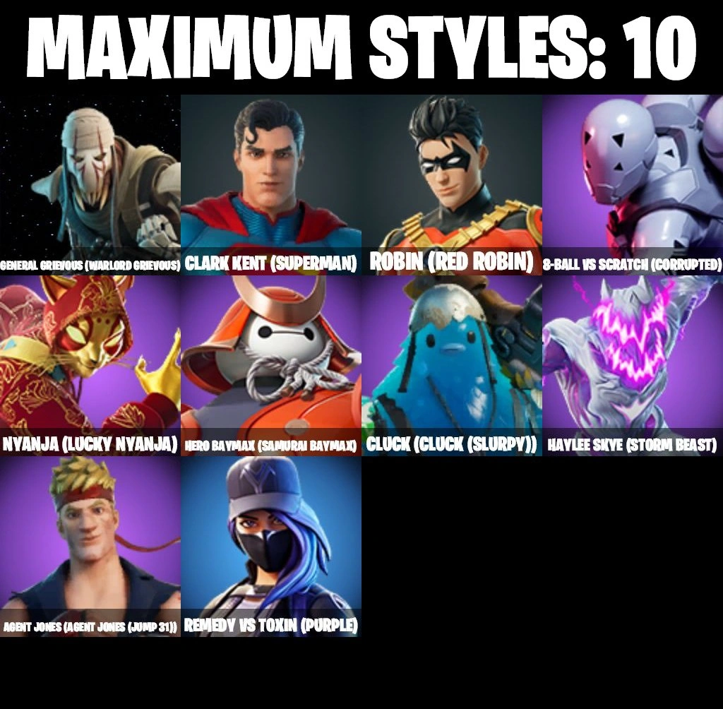 98 SKINS | LARA CROFT | SUB-ZERO MK3 | OUTLAW MIDAS | SPIDER-MAN | SUMMER SKYE | GENERAL GRIEVOUS MAX | WOOKIE TEAM LEADER | POE DAMERON | APPRENTICE EVIE | EMPEROR PALPATNE | HAYLEE SKYE MAX | AURA | MAYA | CHARLOTTE | KOR | TSUK