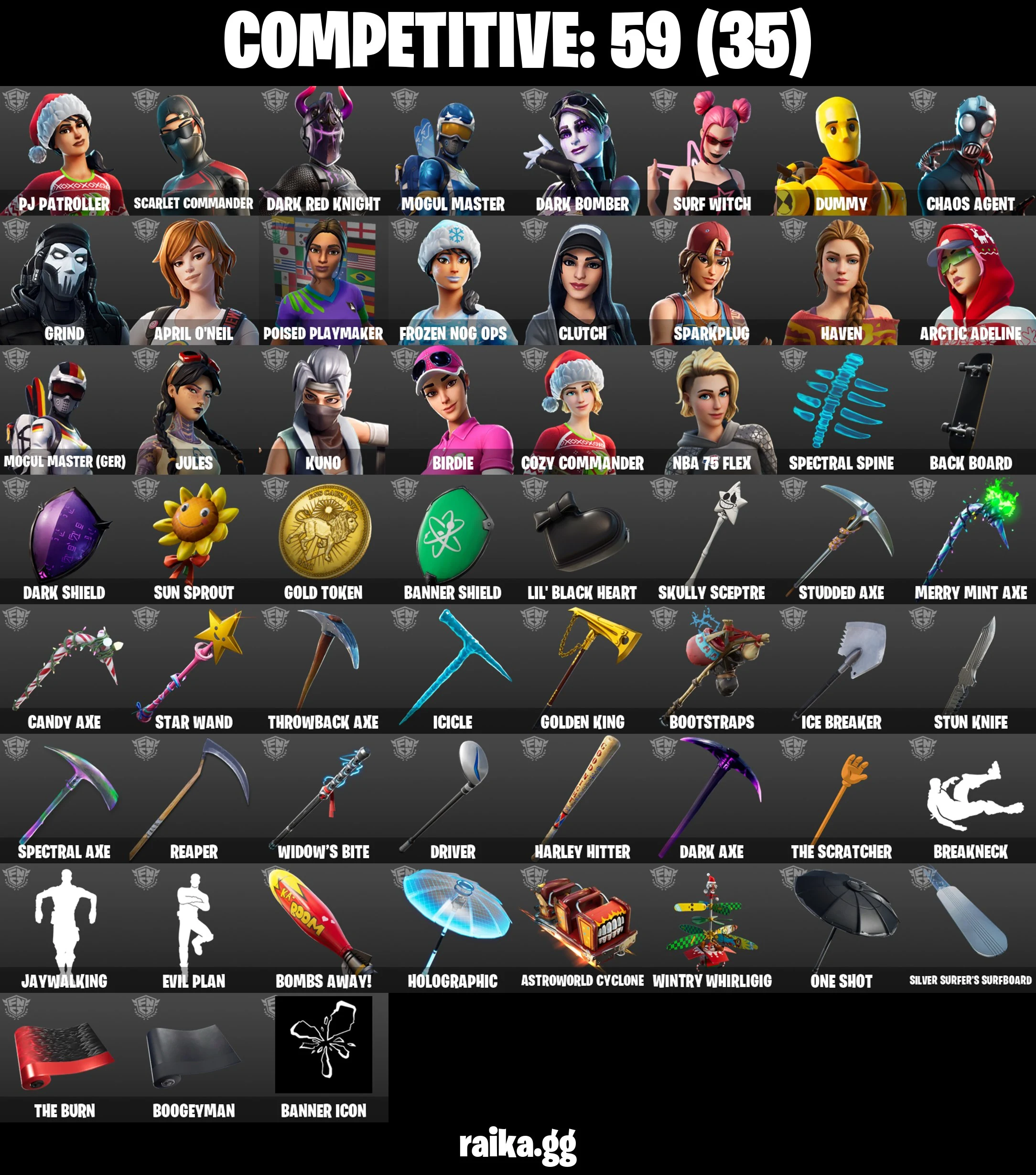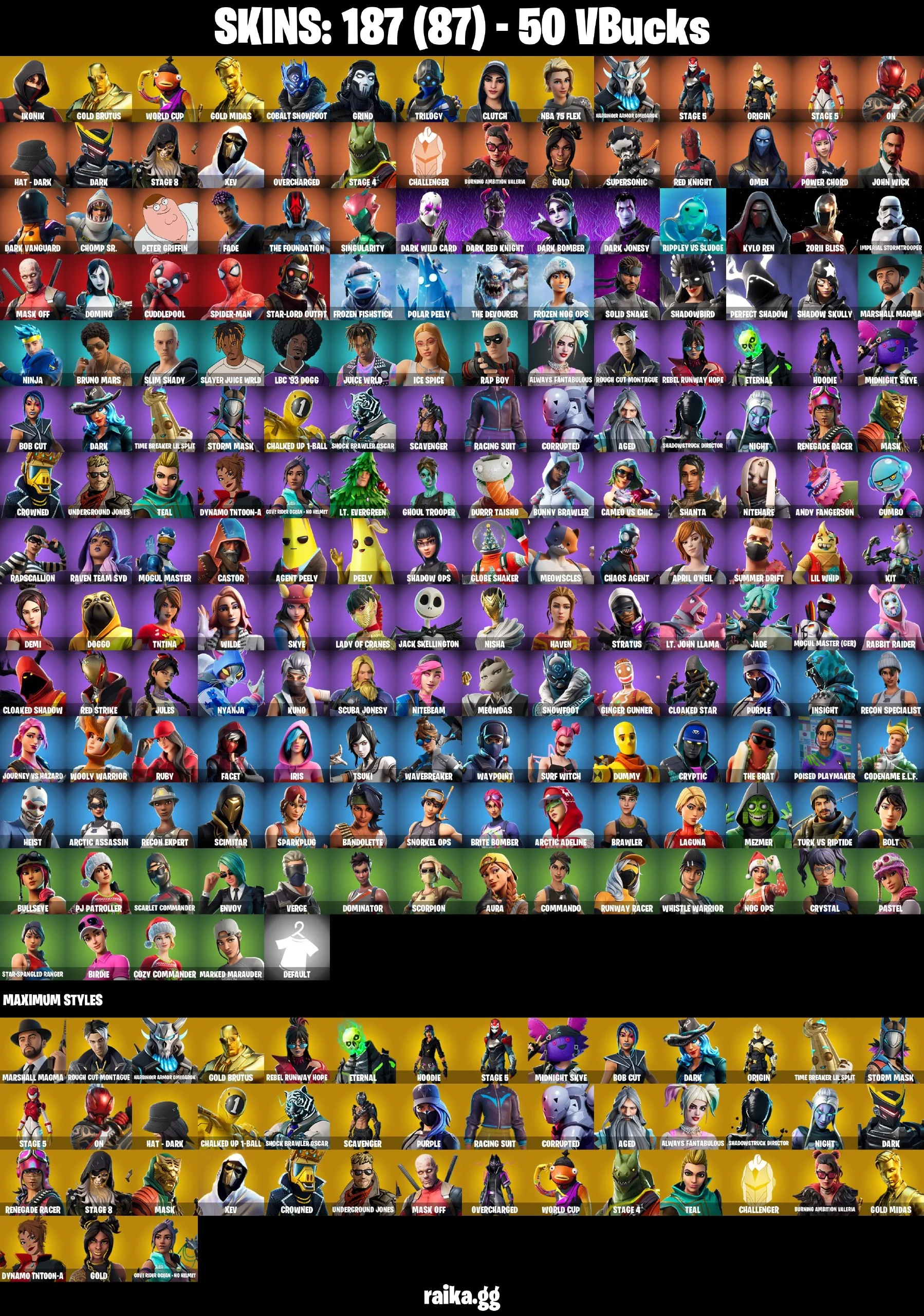👑ALL PLATFORMS👑187 skins👑IKONIK👑Merry Mint Axe👑Harley Quinn👑John Wick👑Ghoul Trooper👑Candy Axe👑Reaper Axe👑Clutch👑Grind👑NBA 75 FLEX(1500days ago)👑