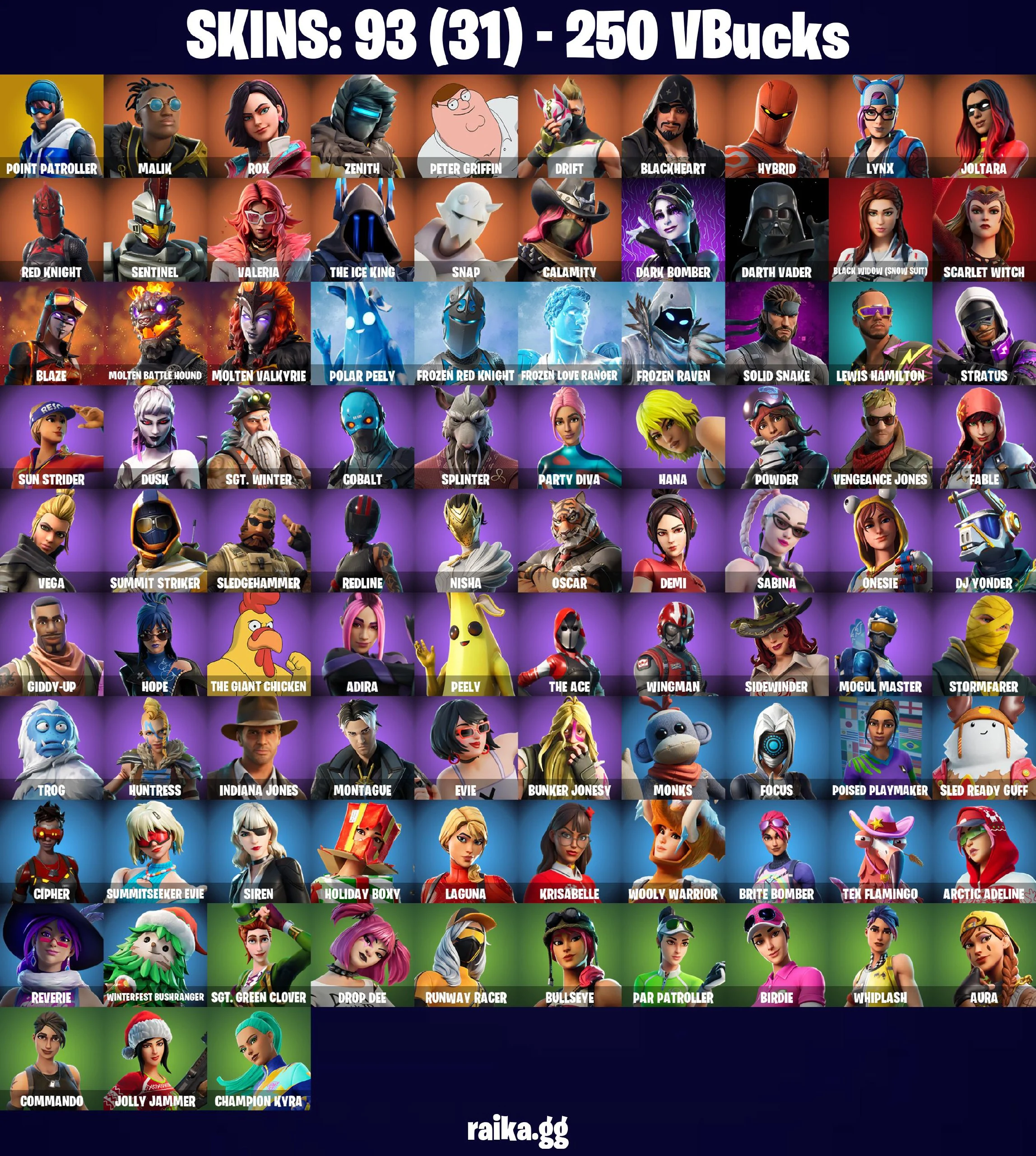 ๐ดโฆ๏ธ BEST ACCOUNT โฆ๏ธ๐ด 93 skins ๐ Point Patroller ๐ Malik ๐ Rox ๐ Zenith ๐ Peter Griffin ๐ Drift ๐ Blackheart ๐ Hybrid ๐ Lynx ๐ Joltara ๐ Red Knight ๐ Sentinel ๐ Valeria ๐ The Ice King ๐ Snap ๐ Calamity ๐ PC\PSN\XBOX\SWITCH ๐