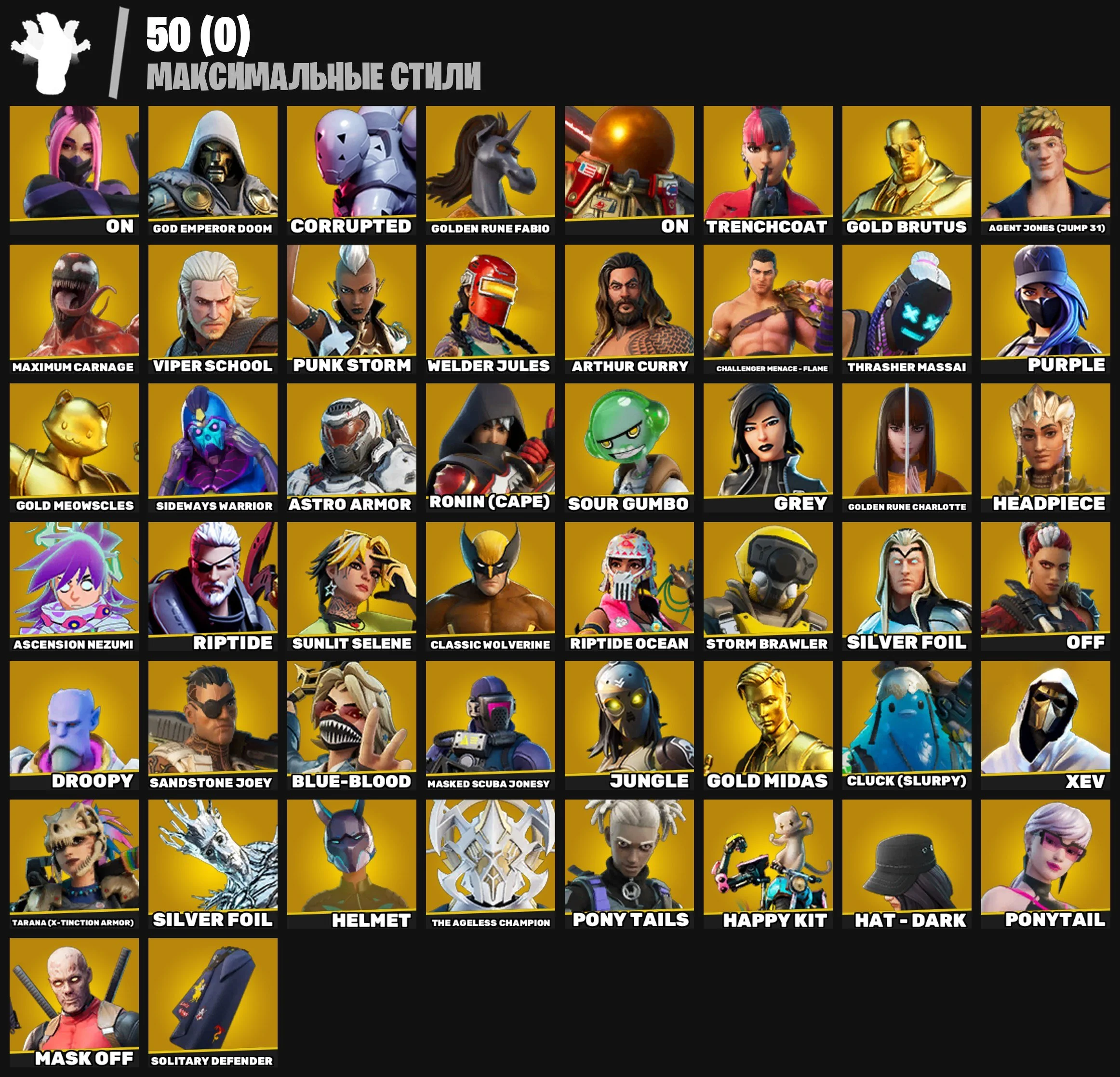 F780 JINX, VI, MAJOR GLORY, CURSE BUSTER, LAUGH IT UP, RAGE, ASTROWORLD, GOLD MIDAS, 235 Skins