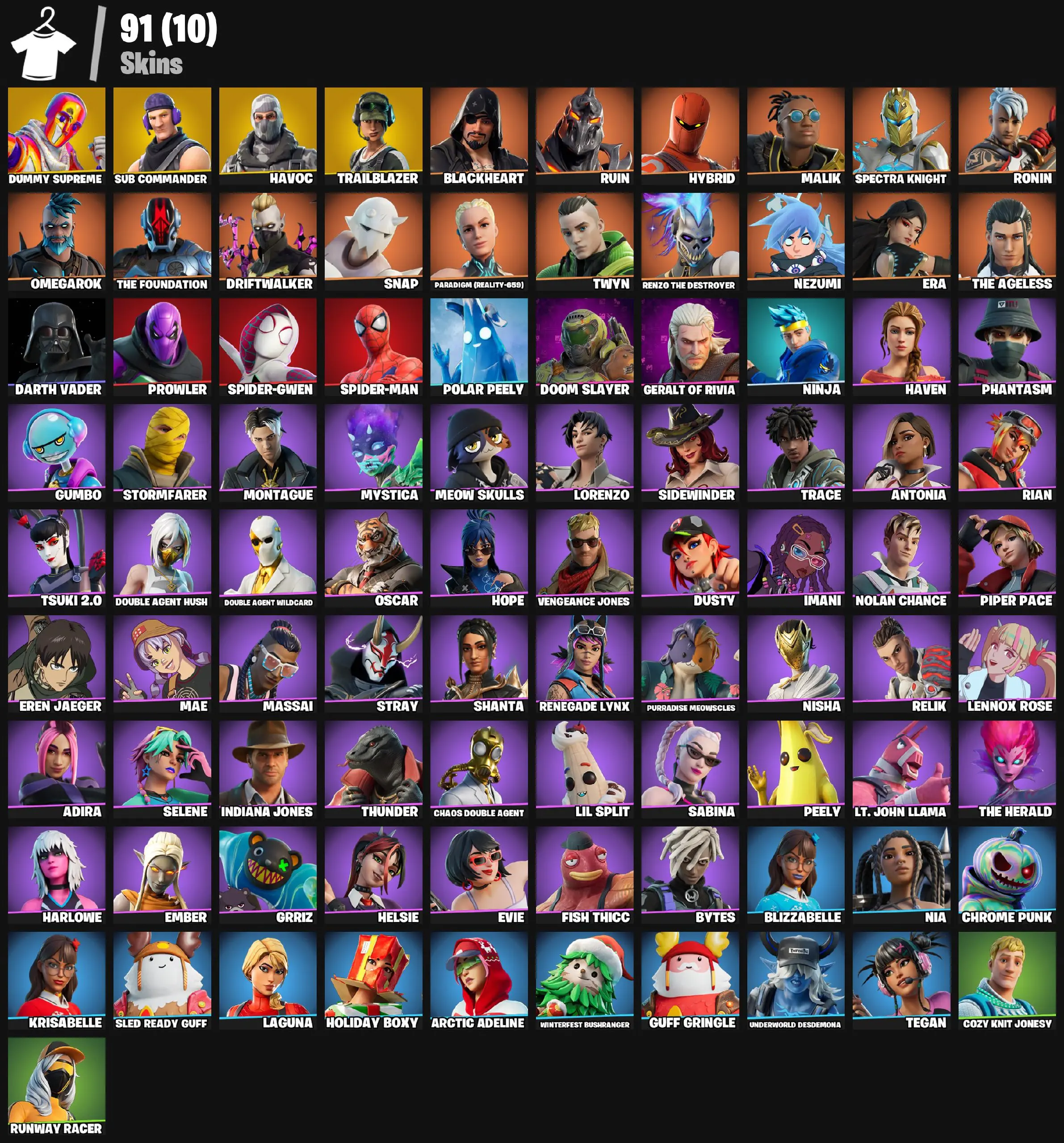 🎮 91 SKINS (PC) NINJA ⚡ LAGUNA ⚡ RUIN ⚡ SPIDER-MAN ⚡ DARTH VADER ⚡ INDIANA JONES ⚡ GERALT OF RIVIA ⚡ HYBRID ⚡ BLACKHEART | ✅ Instant Delivery | 🔓 Full Access !MKG03990