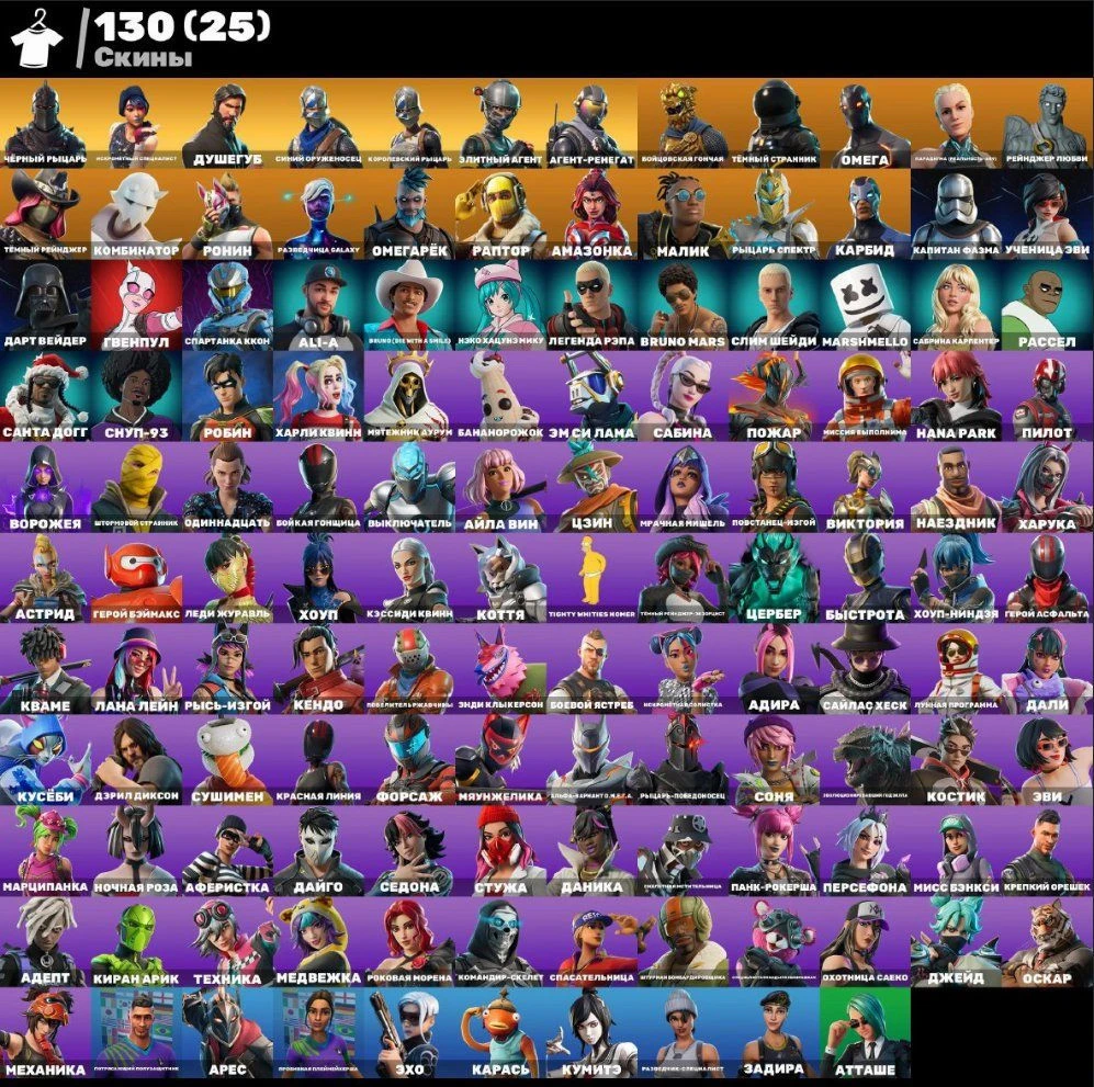 Fortnite ⸱ 130 Skins ⸱ 3250 V-Bucks ⸱ Black Knight ⸱ Full Access