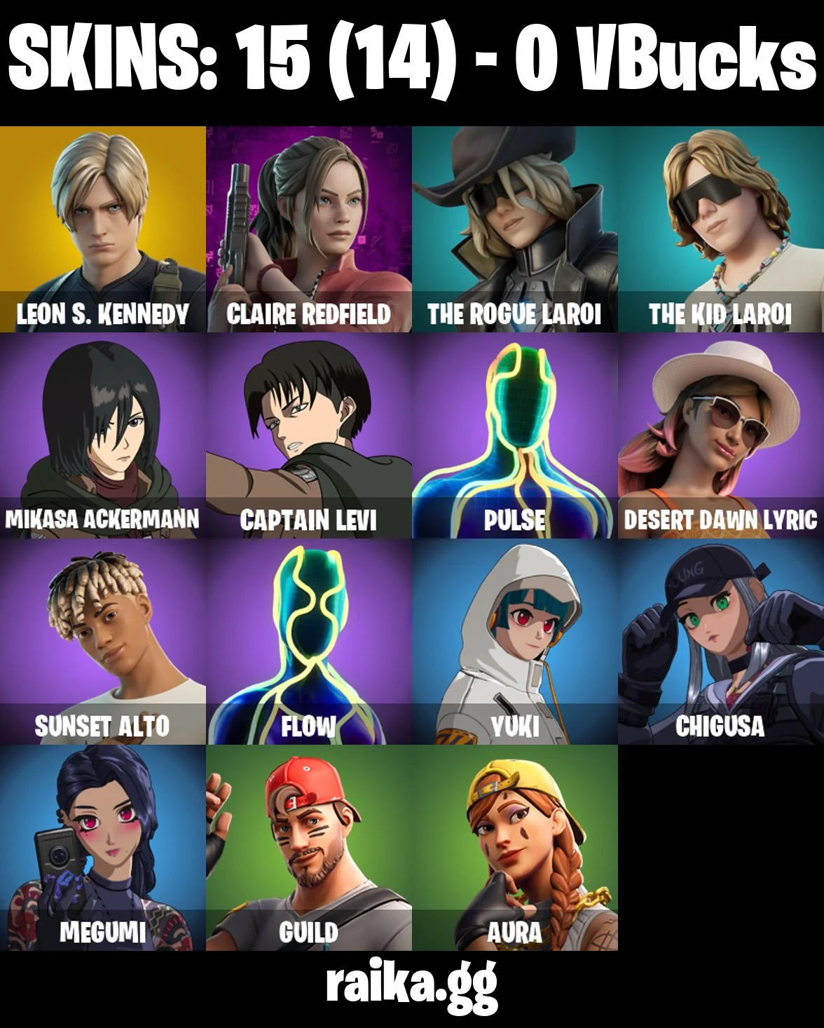 Original Email ✅ Inactive for 3 years | 15 skins | Leon S. Kennedy | Captian Levi | Mikasa Ackermann | Claire Redfield | The Rogue LAROI | The Kid LAROI | Mikasa Ackermann | Captain Levi | Pulse | Desert Dawn Lyric | 0 VB