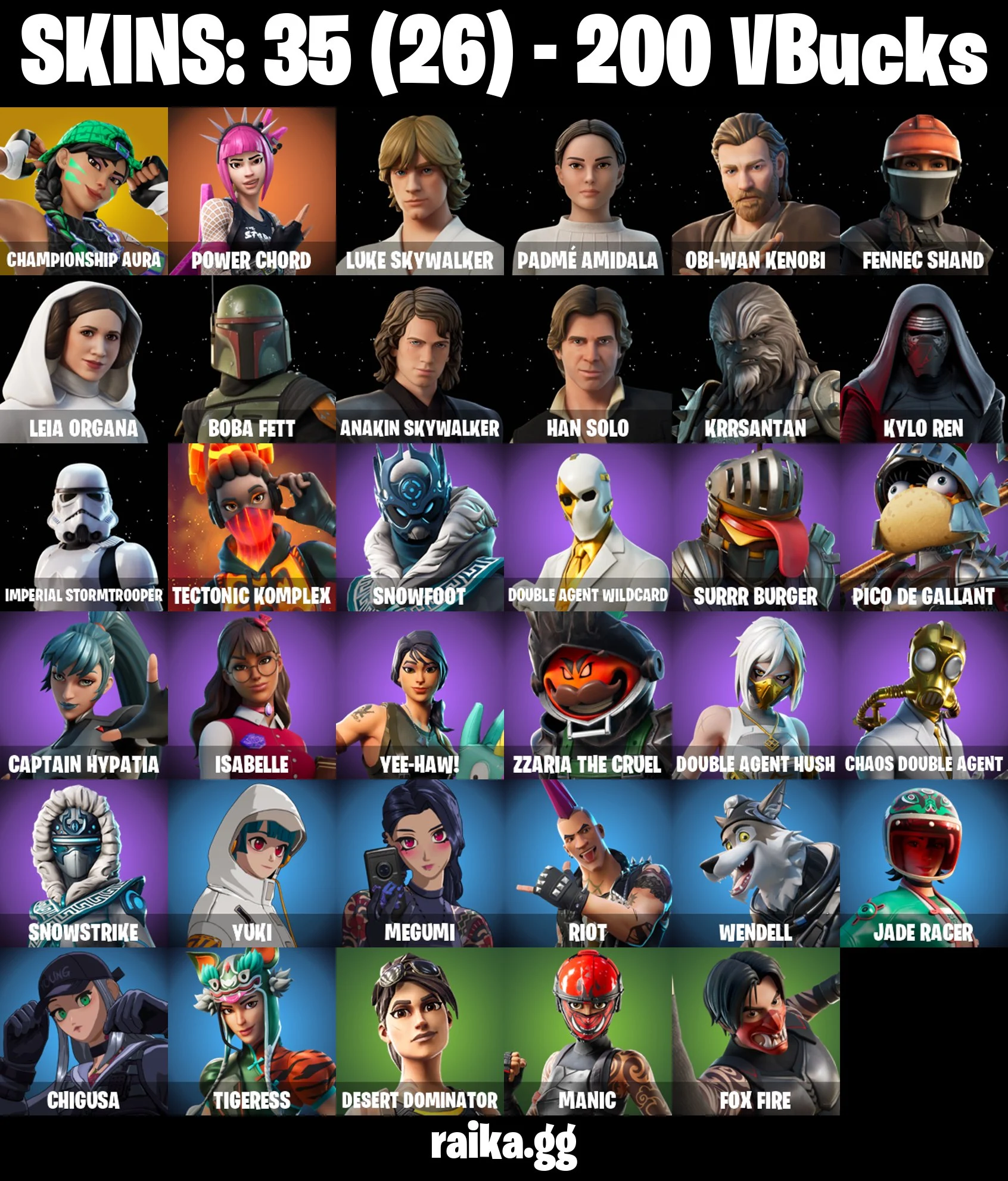 Original Email ✅ Inactive for 3 years | 35 skins | Championship Aura | Power Chord | Luke Skywalker | Padmé Amidala | Obi-Wan Kenobi | Fennec Shand | Leia Organa | Boba Fett | 200 VB