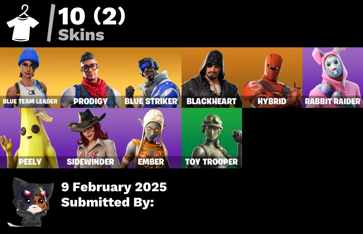 [PC] 10 skins | Blue Team Leader | Prodigy | Blue Striker | Blackheart | Hybrid | Rabbit Raider | Peely | Sidewinder | Ember | Toy Trooper | 500 VB