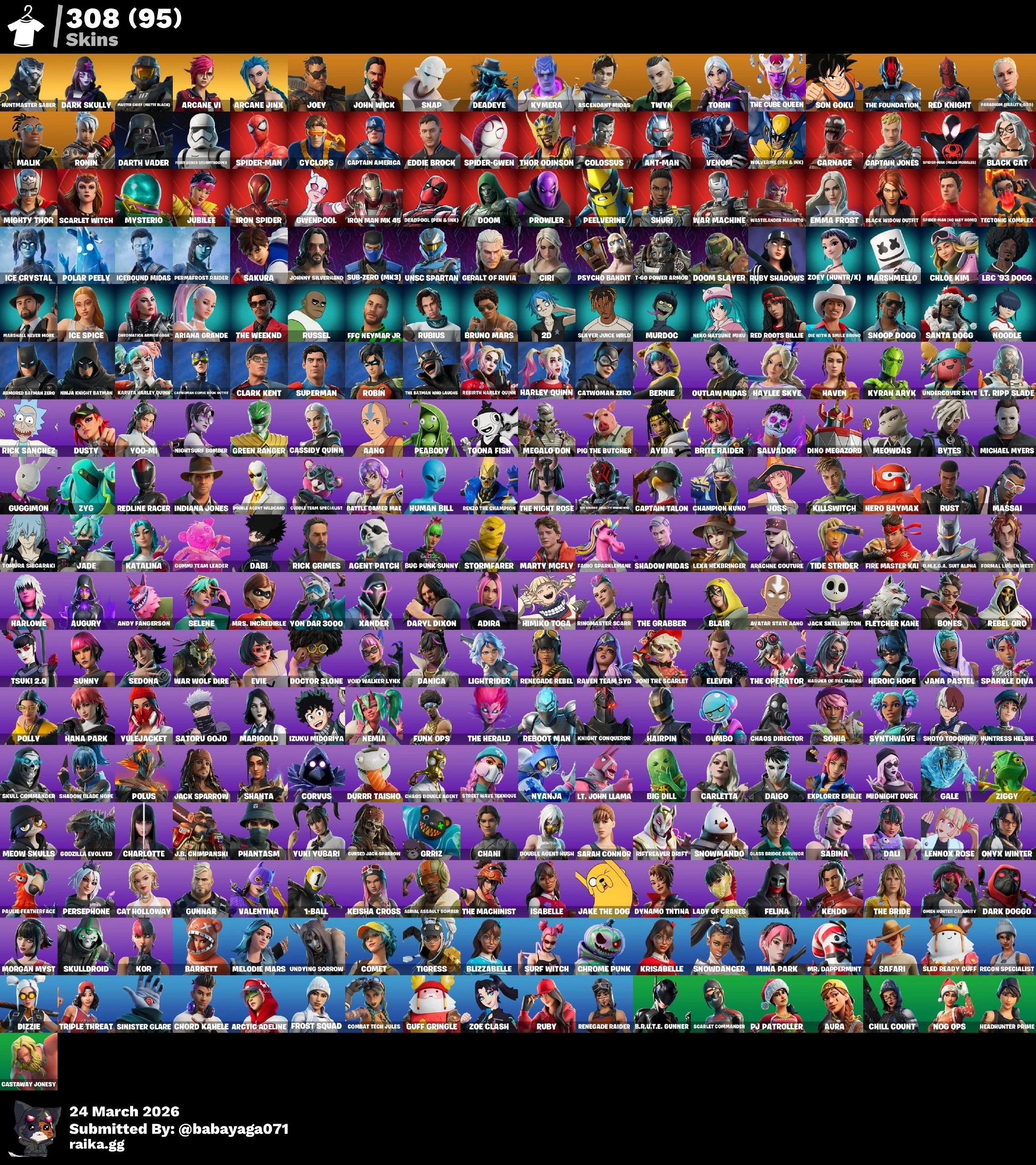 [PC]🔥 308 SKINS | RENEGADE RAIDER | HUNTMASTER SABER | DARK SKULLY | MASTER CHIEF (MATTE BLACK) | ARCANE VI | ARCANE JINX | JOEY | JOHN WICK | SNAP | 0 VB #MT
