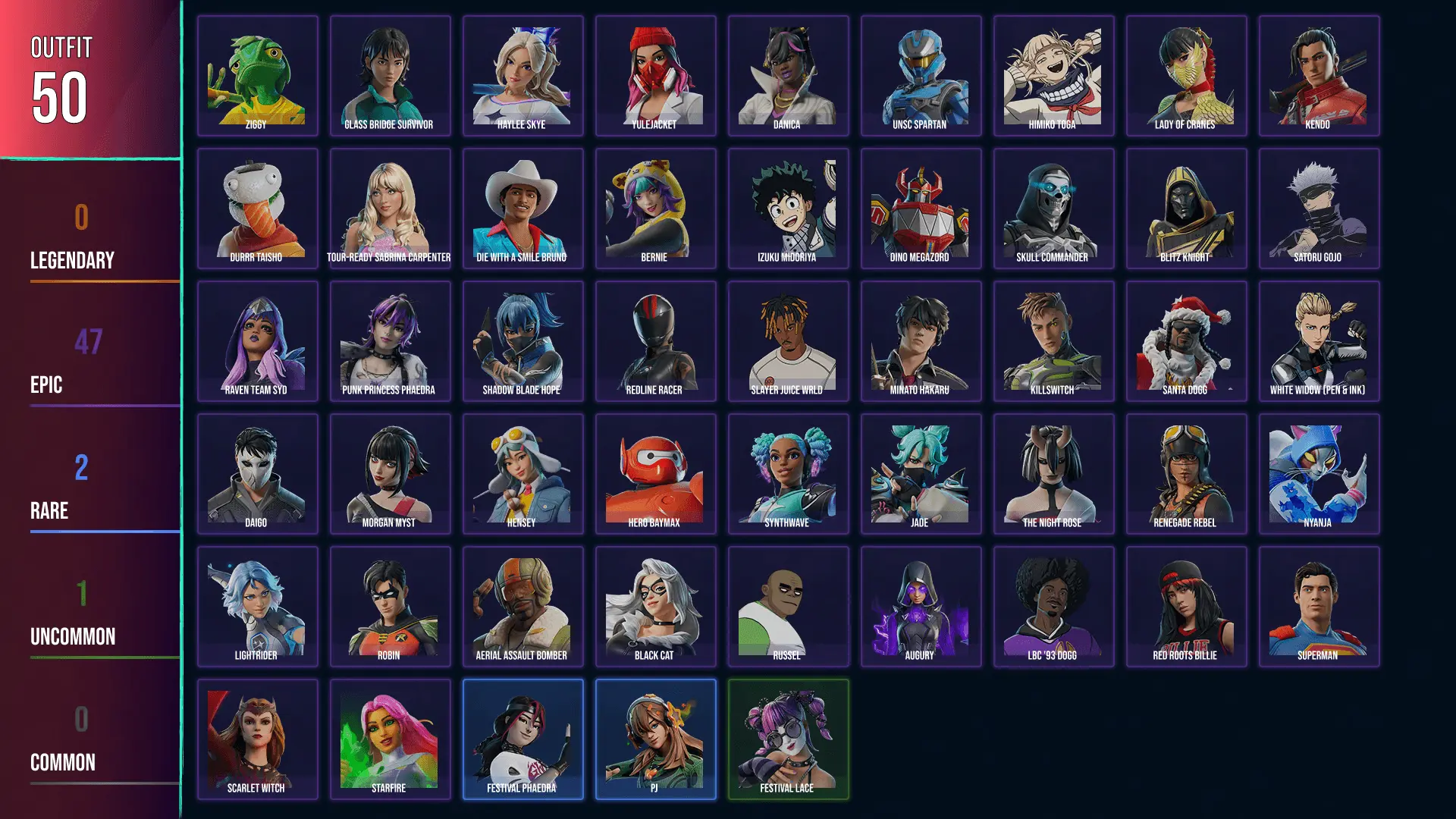🥑 PC 🥑 50 SKINS 🥑 Ziggy 🥑 Glass Bridge Survivor 🥑 Santa Dogg 🥑 Blitz Knight 🥑 Killswitch 🥑 Haylee Skye 🥑 Danica 🥑 UNSC Spartan 🥑 Himiko Toga 🥑 Lady of Cranes 🥑 Kendo 🥑 Durrr Taisho 🥑 0 VBUCKS 🥑 FMCd2 🥑