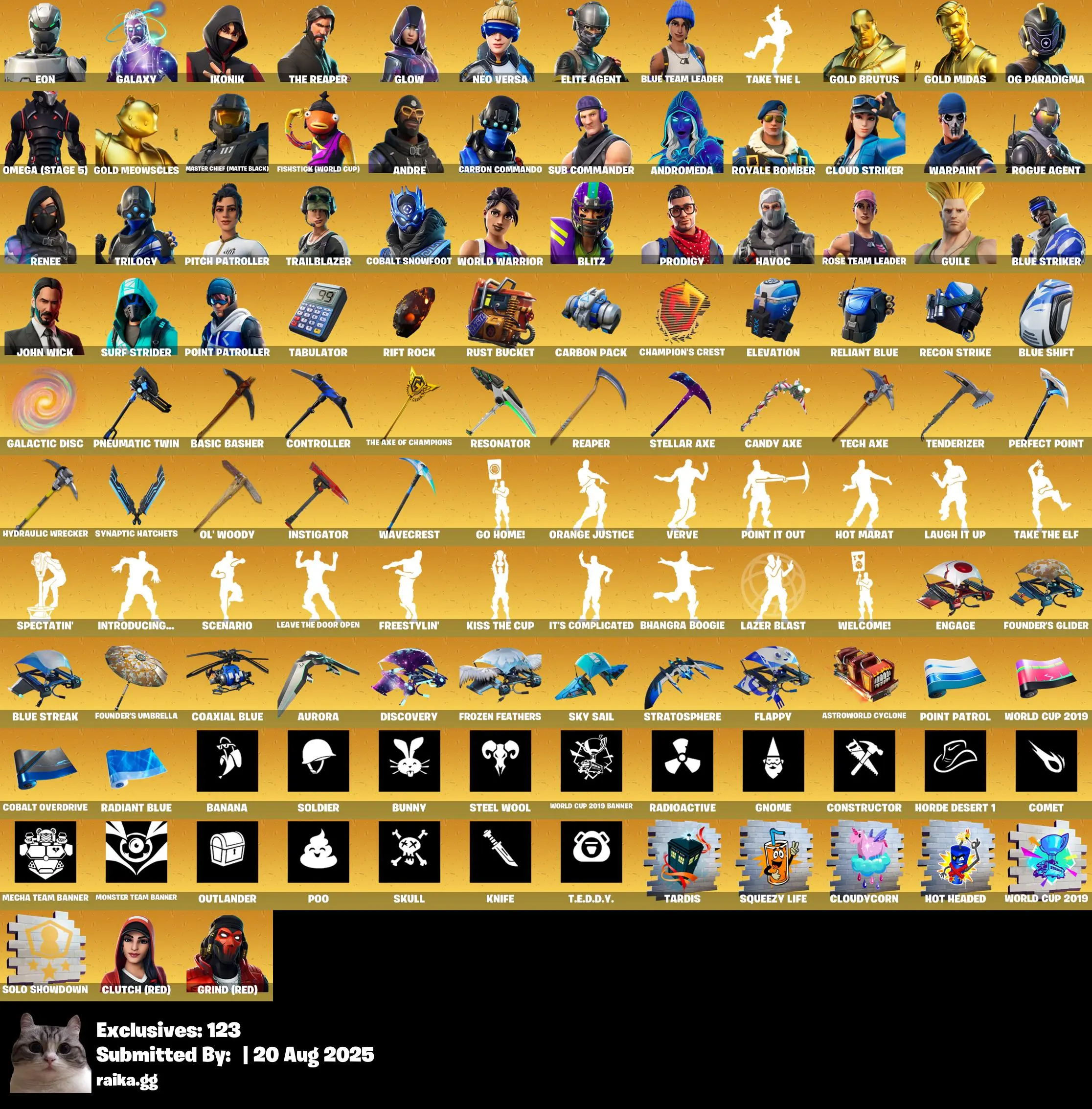 [PC] 764 skins | OG STW | Eon | Galaxy | IKONIK | The Reaper | Glow | Neo Versa | Elite Agent | Blue Team Leader | Gold Brutus | Gold Midas |