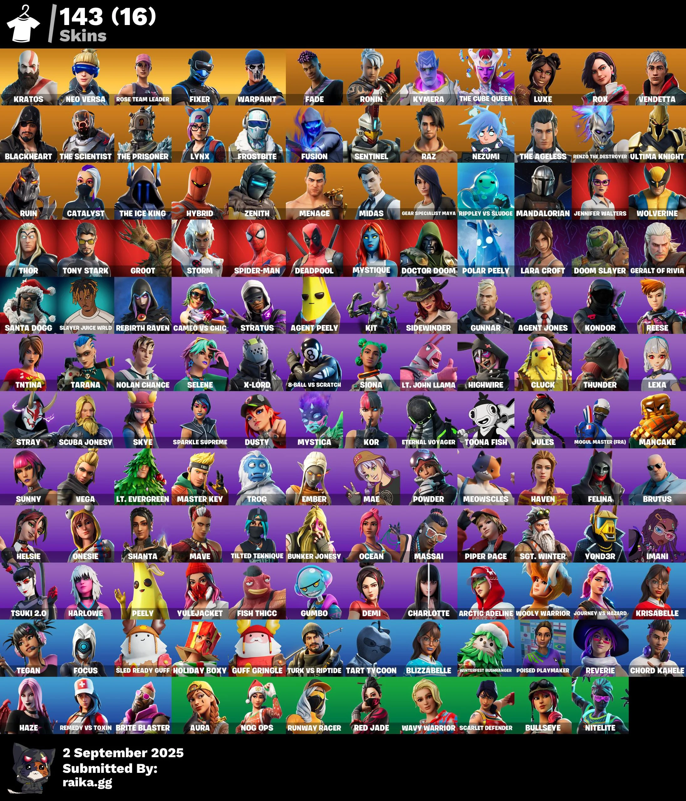 [PC | PSN | XBOX] 143 skins | OG STW | Kratos | Neo Versa | Fixer | Fade | Ronin | Kymera | The Cube Queen | Luxe | Rox | Vendetta | Blackheart | The Scientist | 740 VB