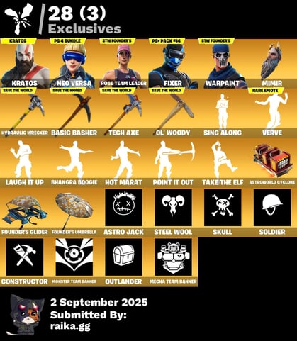 [PC | PSN | XBOX] 458 skins | OG STW | Travis Scott | Rogue Spider Knight | LEVIATHAN AXE | CANDY AXE | Omega (stage 5) | The Reaper | Elite Agent | Astro Jack | Gold Brutus | Gold Meowscles | 215 VB