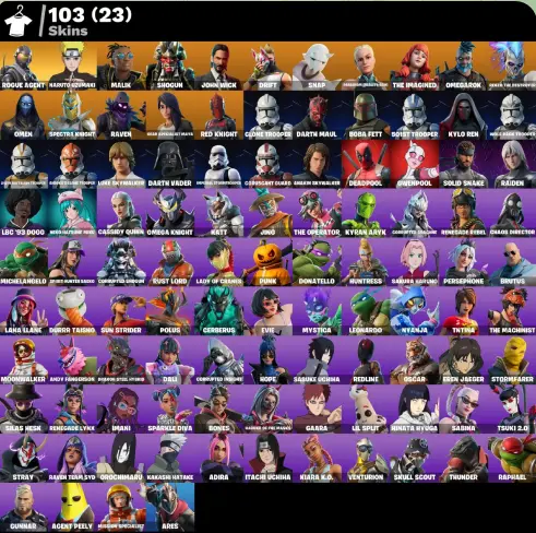 (PC PSN XBOX) 103 SKINS / HINATA HYUGA / ITACHI UCHIHA / GAARA / OROCHIMARU / SAKURA HARUNO / KAKASHI HATAKE / NARUTO UZUMAKI / SASUKE UCHIHA / 10700 VB / TAKE THE L / BHANGRA BOOGIE