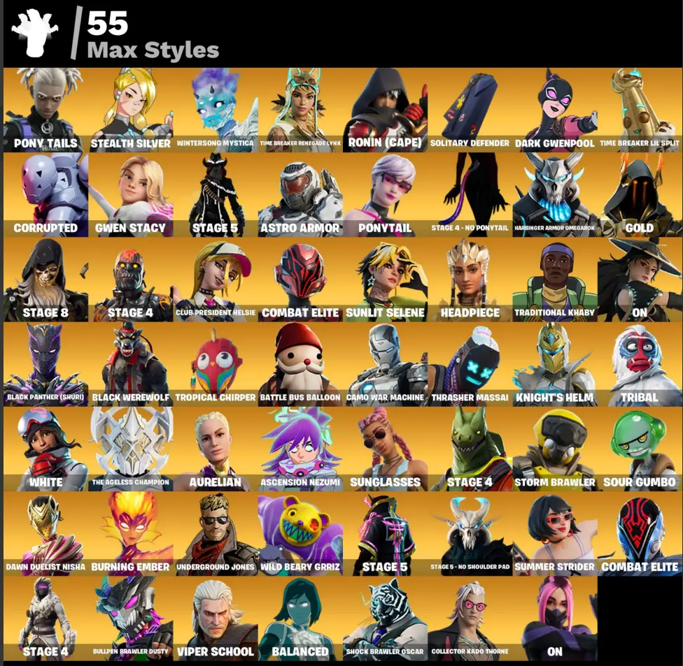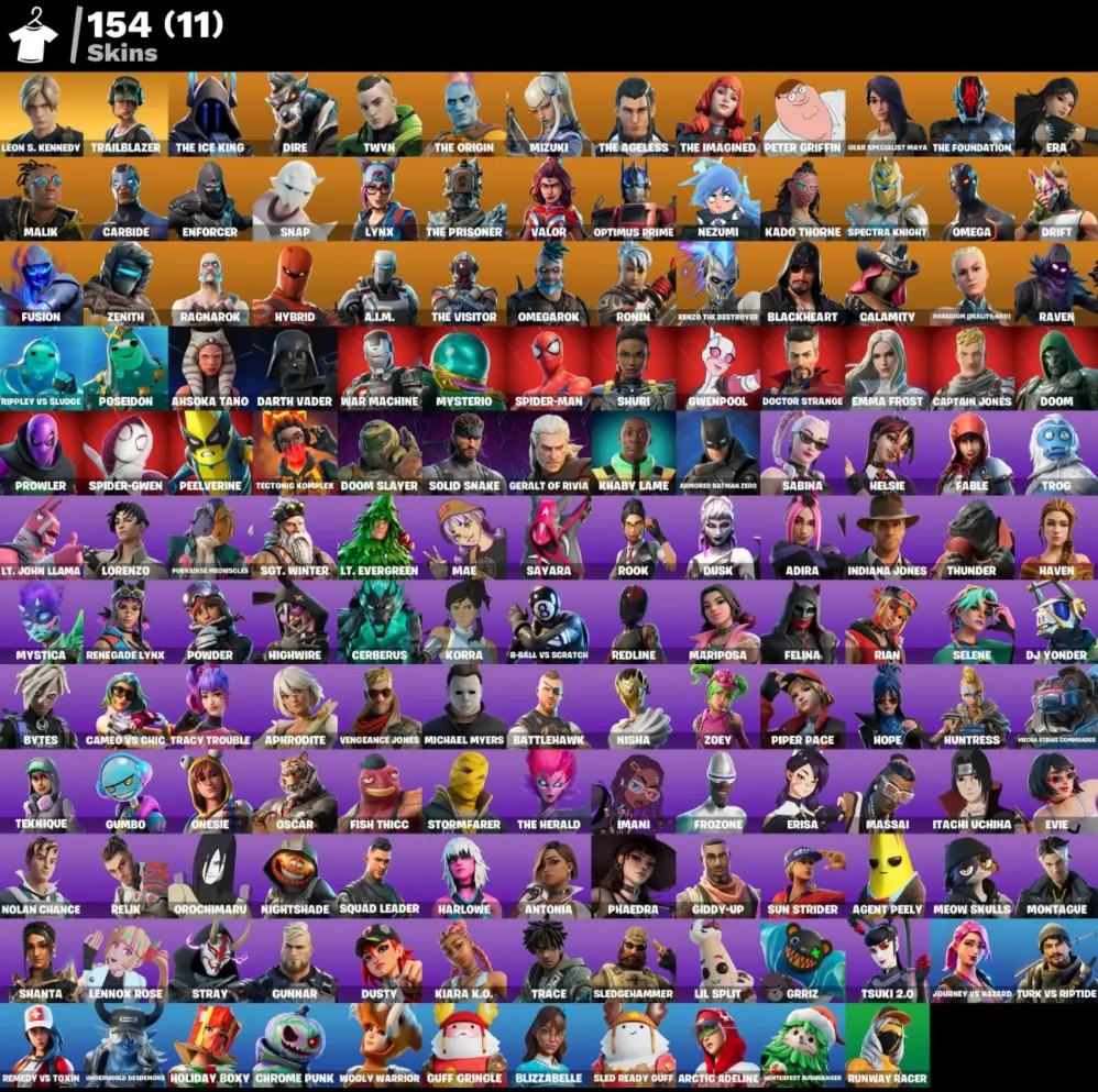 (PC PSN XBOX) 154 skins | Leon S. Kennedy | ITACHI UCHIHA / OROCHIMARU / Trailblazer | The Ice King | Dire | Twyn | The Origin | Mizuki | The Ageless | The Imagined | Peter Griffin | 600 VB
