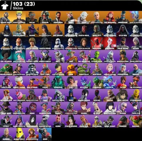 (PC PSN XBOX) 201 skins | OG STW | The Cube Queen | The Imagined | The Foundation | The Scientist | Kymera | Midas | Joey | Eternal Knight | Spire Assassin | 1000 VB / LARA CROFT / AANG