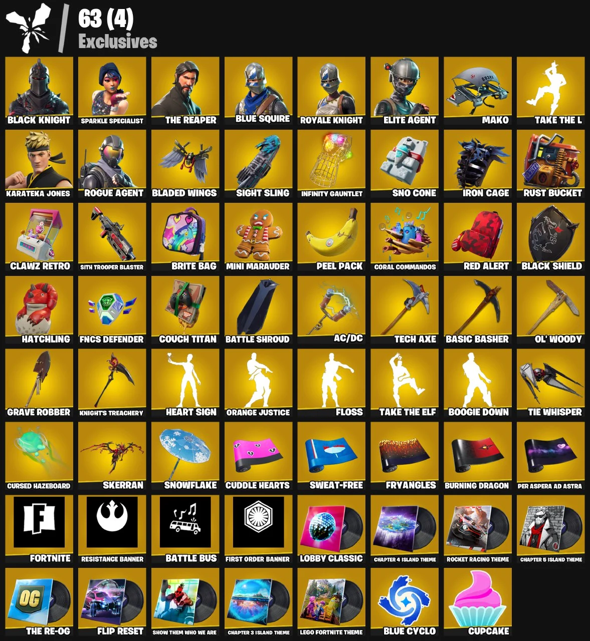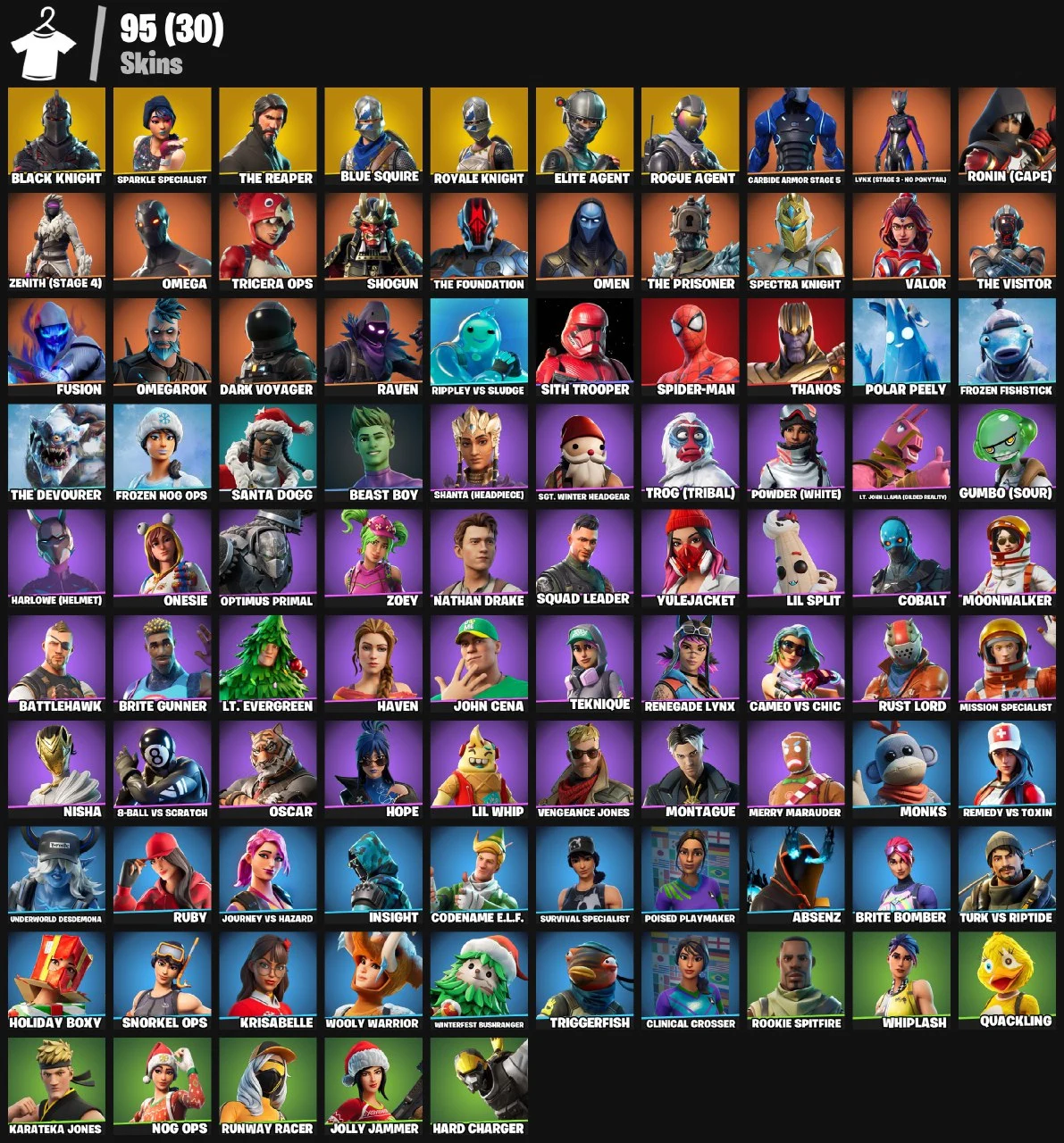 ⭕PC/PSN/XBOX⭕95 Skins + Black Knight + Blue Squire + Royale Knight + Black Shield + The Reaper + Elite Agent + Floss + Sparkle Specialist + Take The L + OMEGA + Ice Breaker + Orange Justice + OG MAKO + Take The Elf | 550Vb