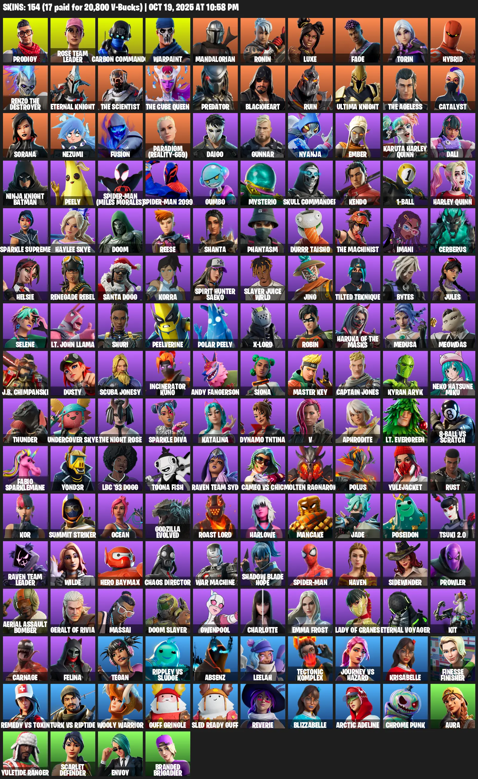 [PC/PSN] 154 Skins | Prodigy | Rose Team Leader | Carbon Commando | Warpaint | Mandalorian | Ronin | Luxe | Fade | Torin | Hybrid | Renzo the Destroyer | Eternal Knight | The Scientist | The Cube Queen | Predator | Blackheart | Ruin | Ultima Knight