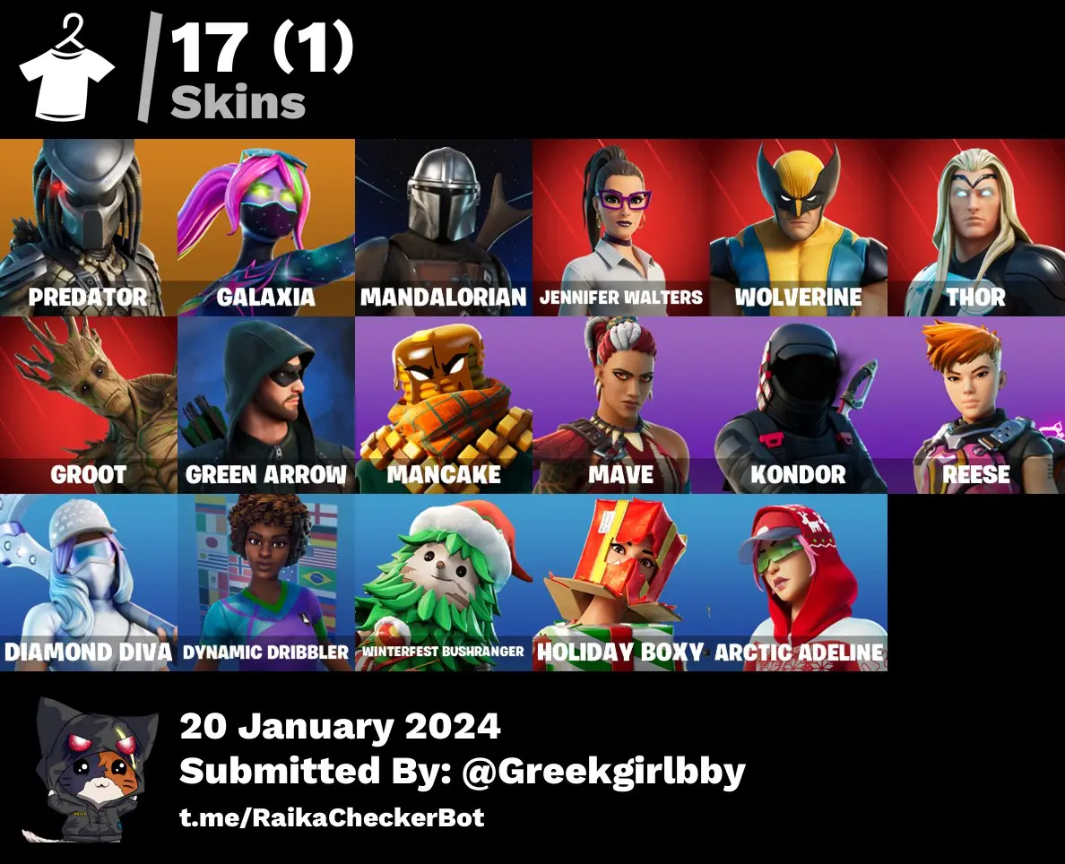 [PC/PSN] 17 skins | Predator | Galaxia | Mandalorian | Jennifer Walters | Wolverine | Thor | Groot | Green Arrow |