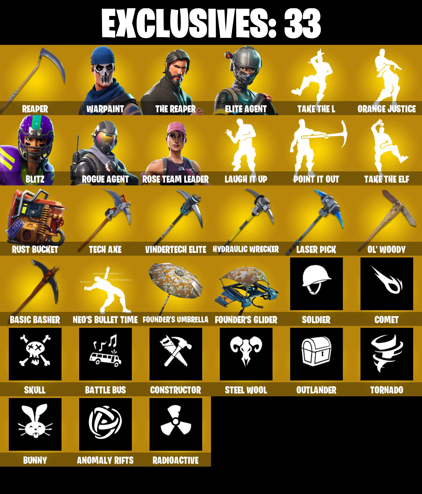 PC/PSN/XBOX ♨️101 skins ✨ OG STW ✨ Reaper ✨ The Reaper ✨ Elite Agent ✨ Omega ✨ Take The L ✨ Orange Justice ✨ Blitz ✨ Dark Voyager ✨ Rogue Agent ✨ #B860