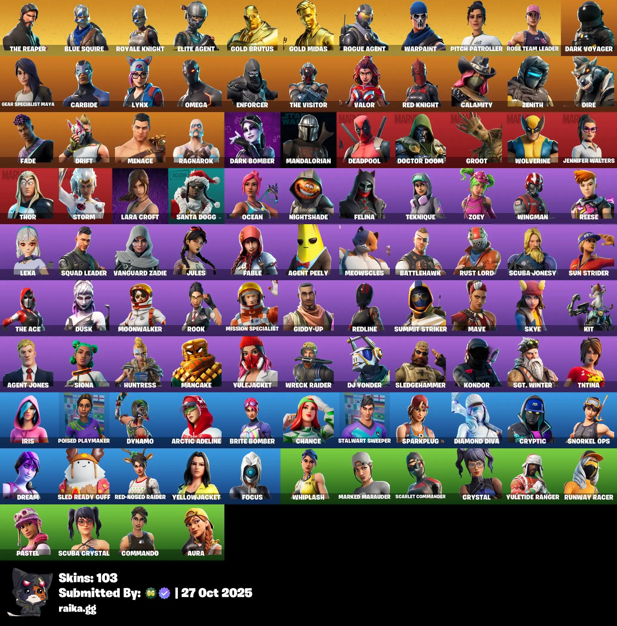 [PC/PSN/XBOX] 103 skins | OG STW | The Reaper | Blue Squire | Royale Knight | Elite Agent | Gold Brutus | Gold Midas | Rogue Agent | Pitch Patroller | 550 VB