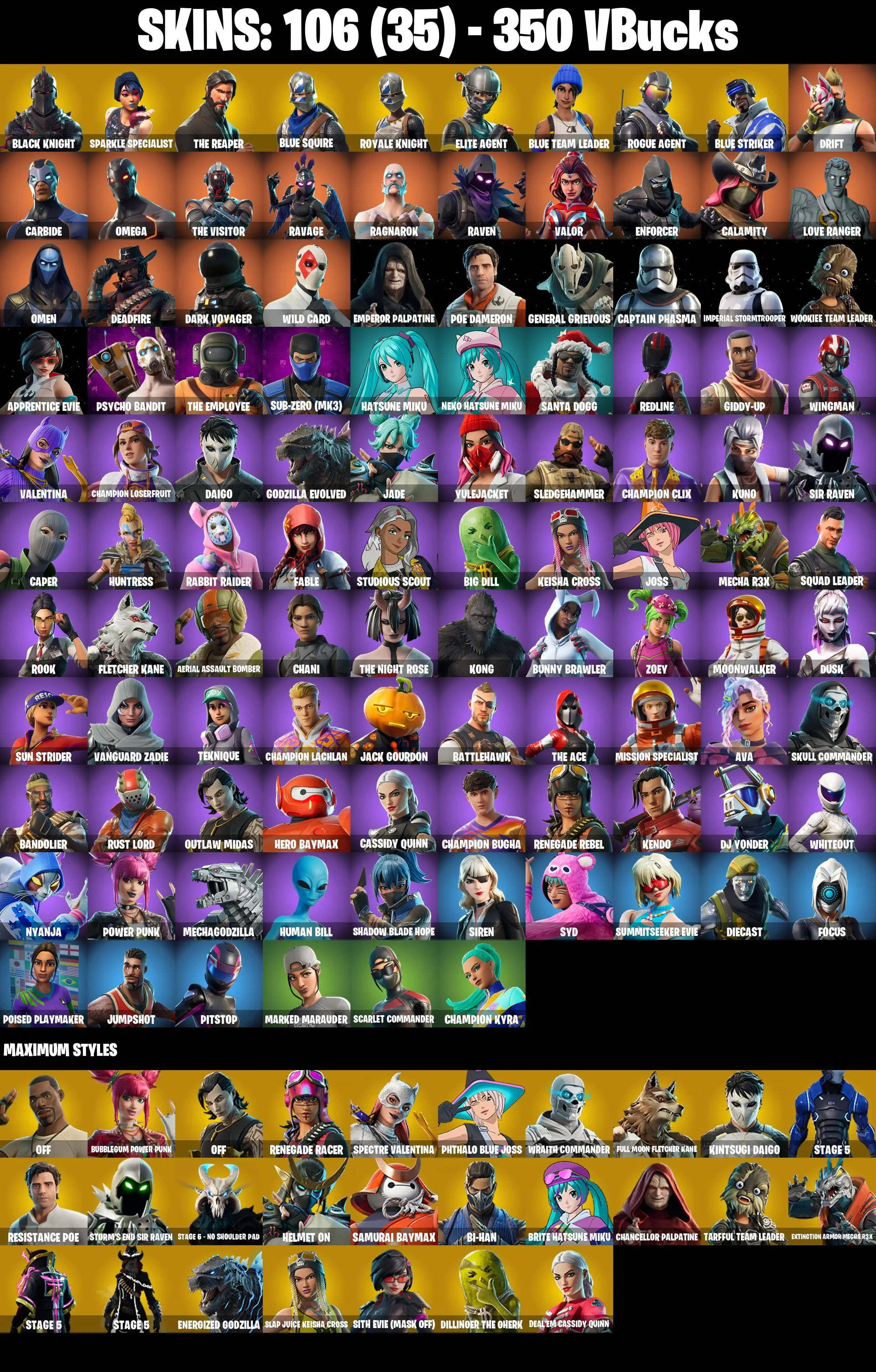 [PC/PSN/XBOX] 106 SKINS | BLACK KNIGHT | SPARKLE SPECIALIST | THE REAPER | BLUE SQUIRE | ROYALE KNIGHT | ELITE AGENT | BLUE TEAM LEADER | MAKO | 350 VB