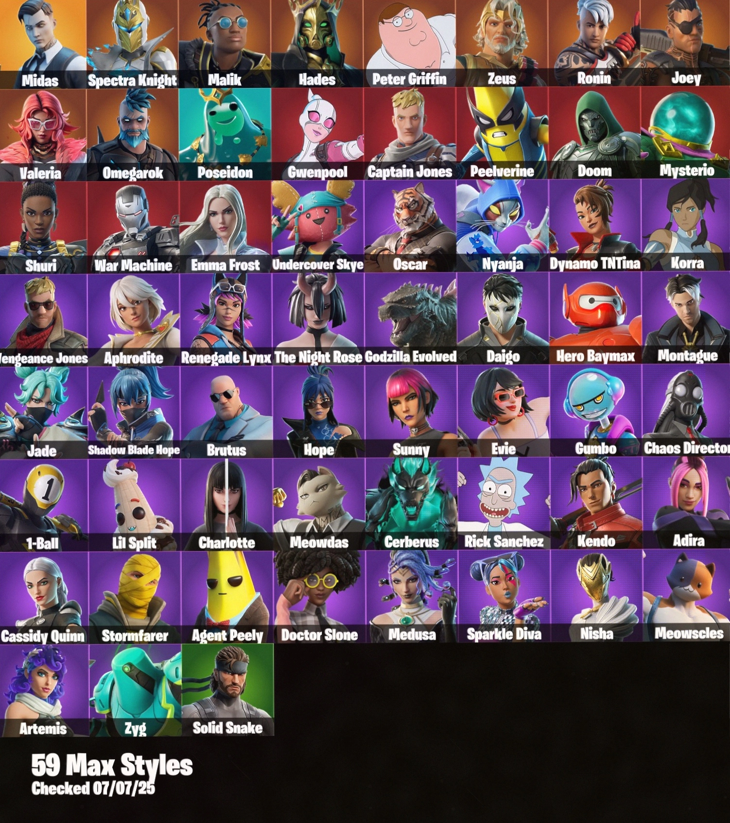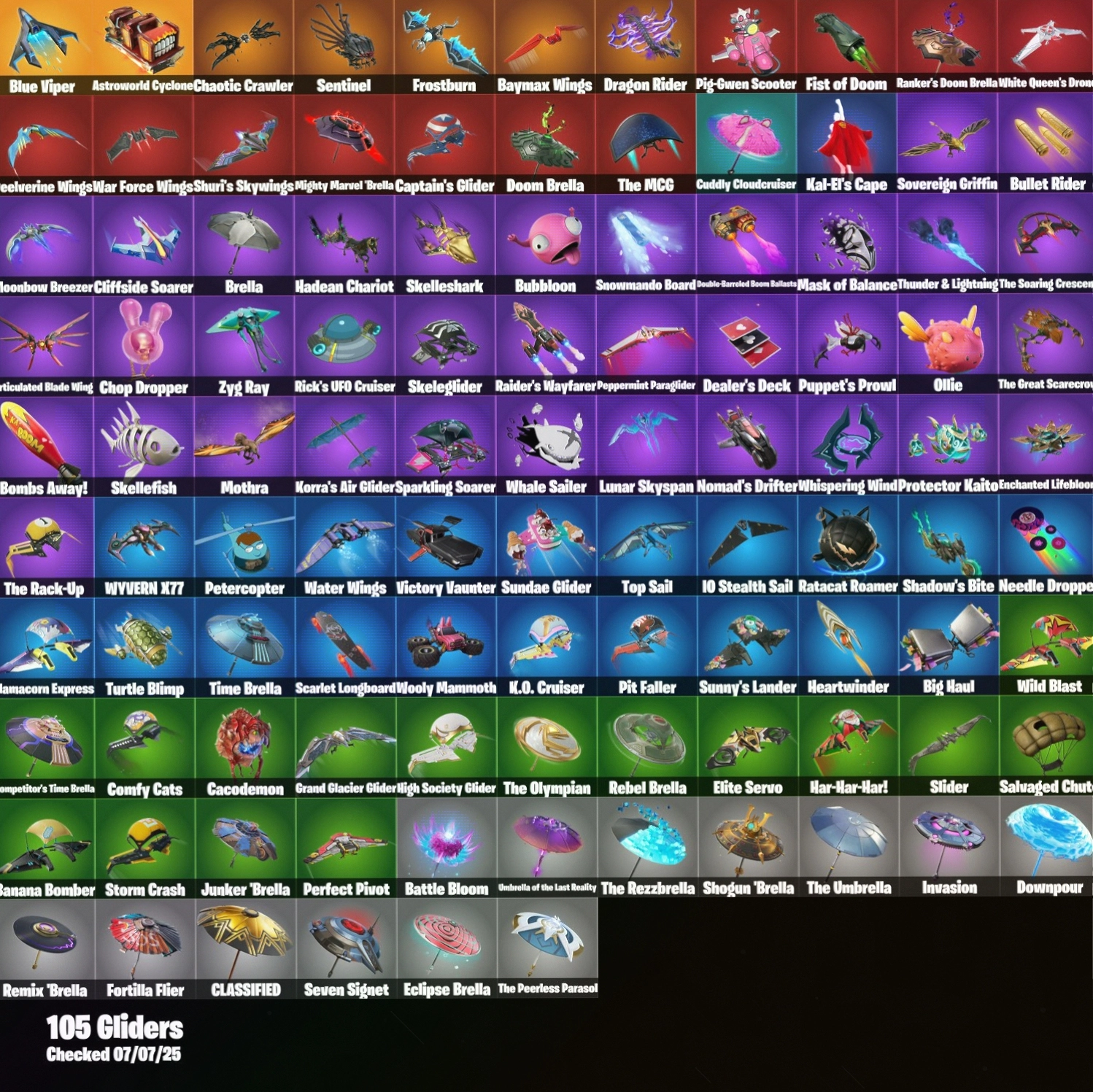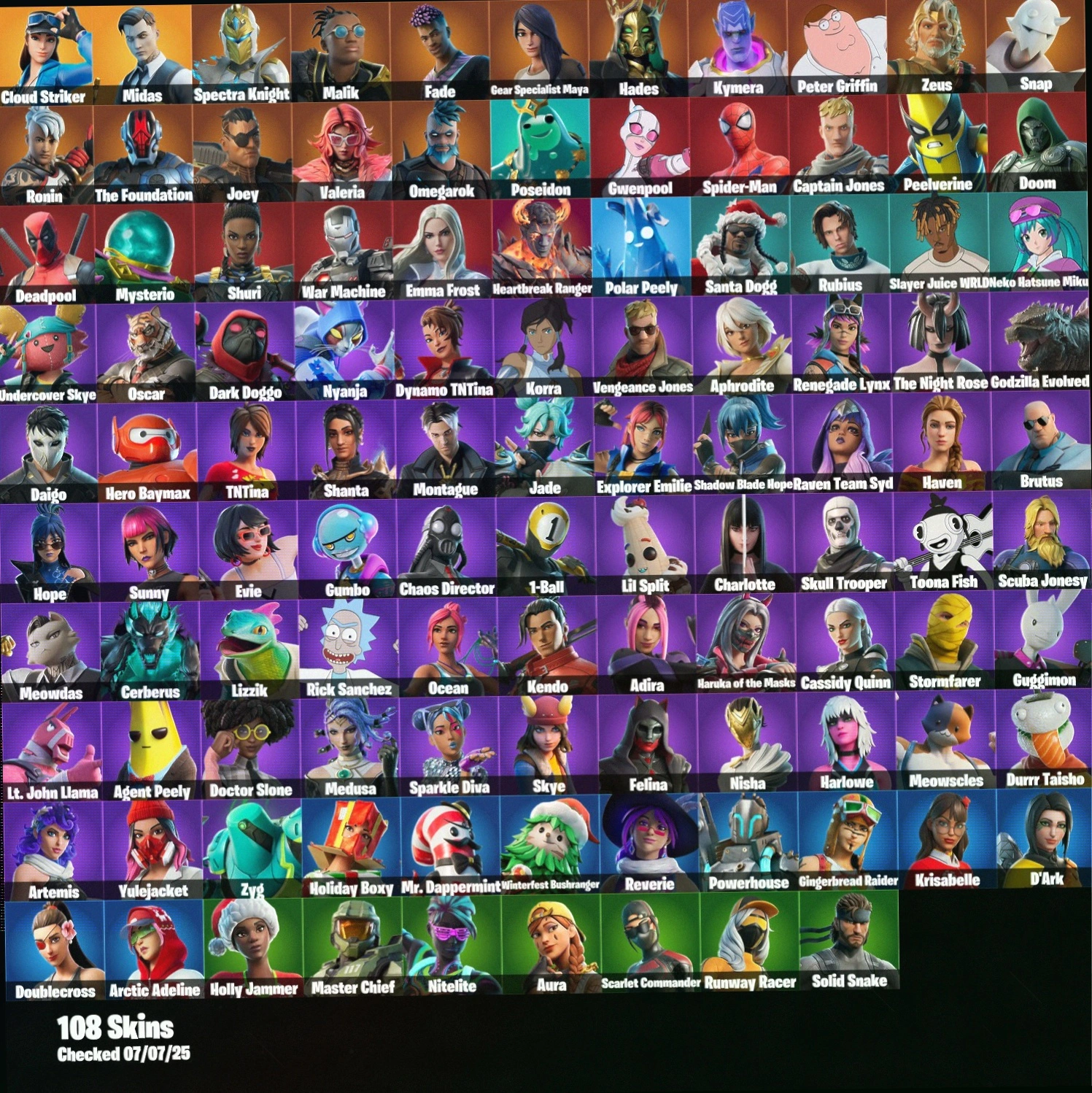 [PC/PSN/XBOX] 108 Skins+Cloud Striker+Midas+Elevation+Shooting Starstaff+Verve+Bird Call+Laugh It Up+Square Up+50 VB ⸱ PARENTAL CONTROL #LOT-163762