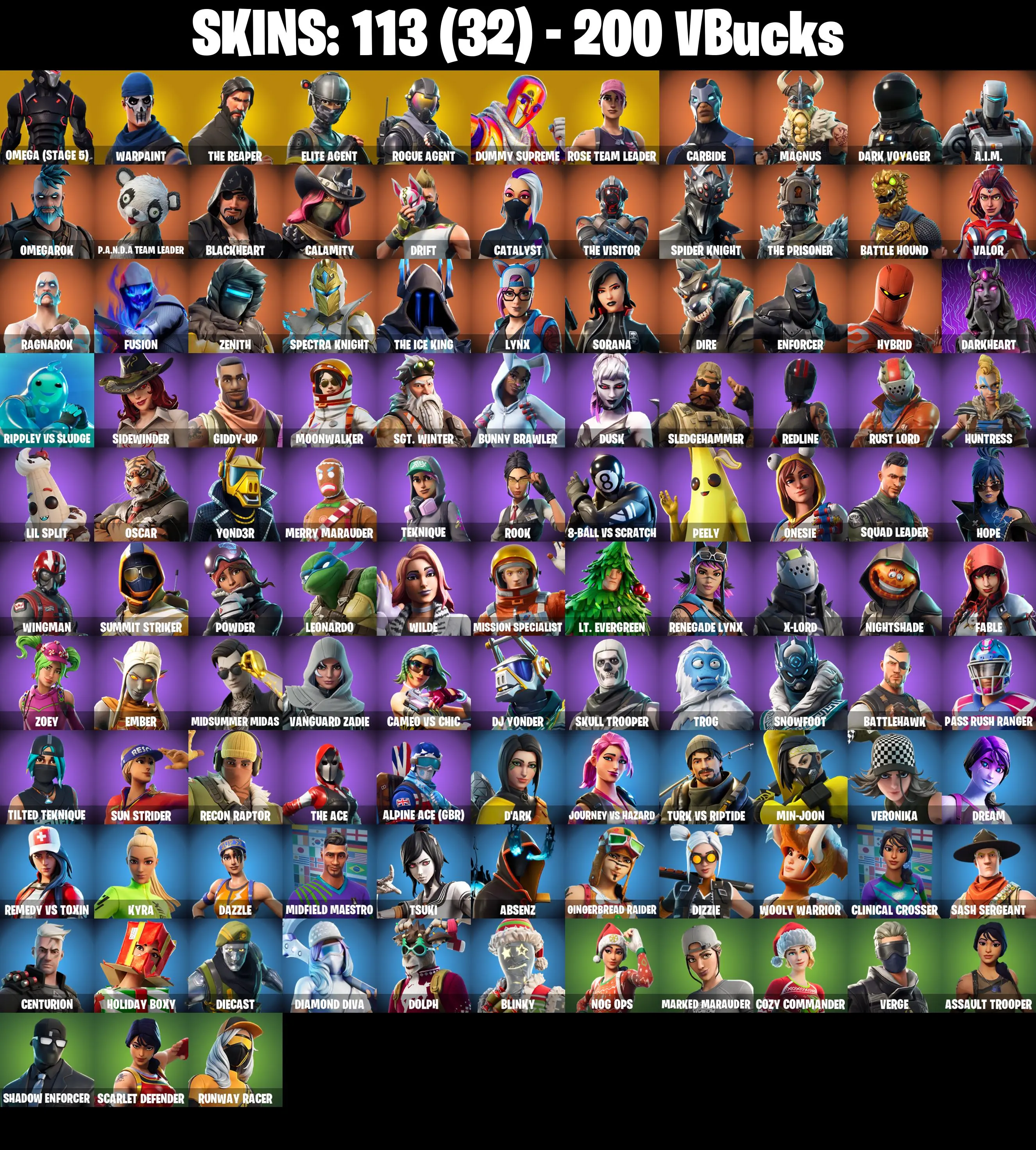 PC/PSN/XBOX ♨️113 skins ✨ OG STW ✨ Omega (stage 5) ✨ The Reaper ✨ Elite Agent ✨ Take The L ✨ Orange Justice ✨ Dark Voyager ✨ Rogue Agent ✨ Drift ✨ #B851