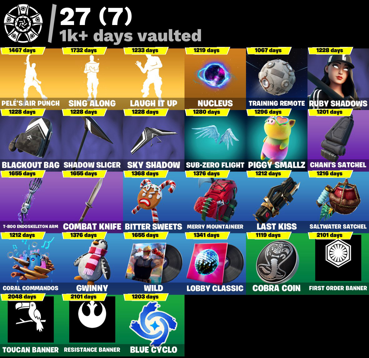 PC,PSN,XBOX 115 SKINS FA ⸱ GLOW ⸱ GALAXIA ⸱ CHANI ⸱ LUKE SKYWALKER ⸱ ARIANA GRANDE ⸱ CHLOE KIM ⸱ LARA CROFT ⸱ YELLOWJACKET RK099