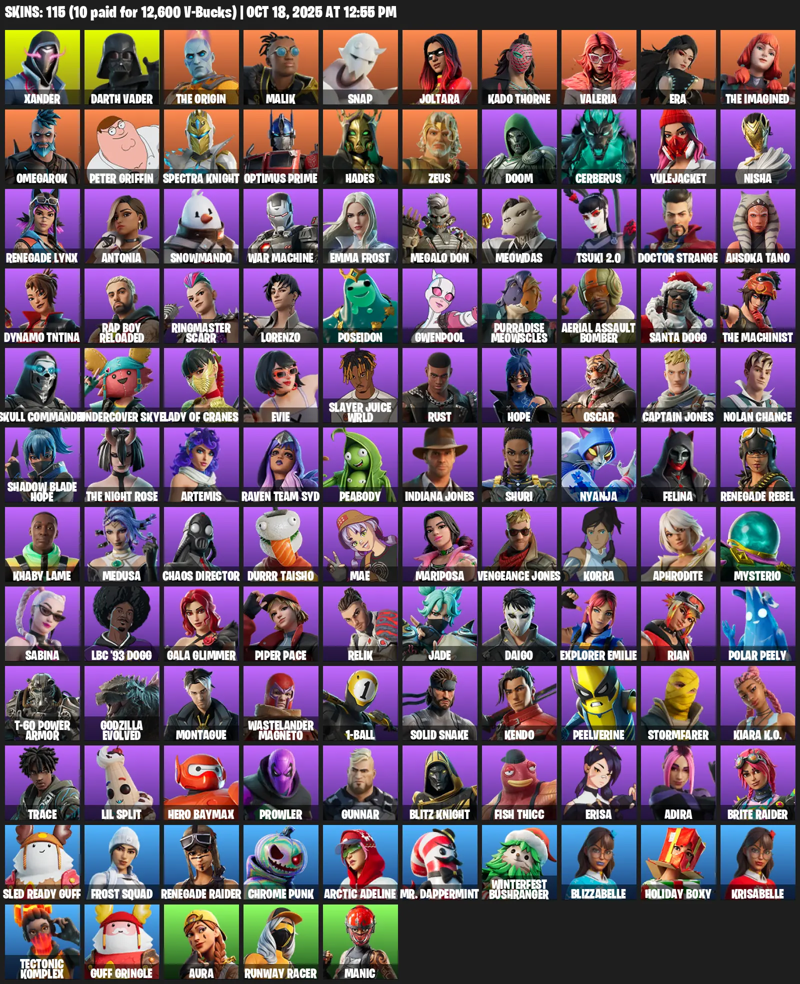 π¨ [PC/PSN/XBOX] π 115 skins | Xander , Darth Vader , The Origin , Malik , Snap , Joltara , Kado Thorne , Valeria , Era | π 1300 VBUCKS | βοΈ Changeable Email Now
