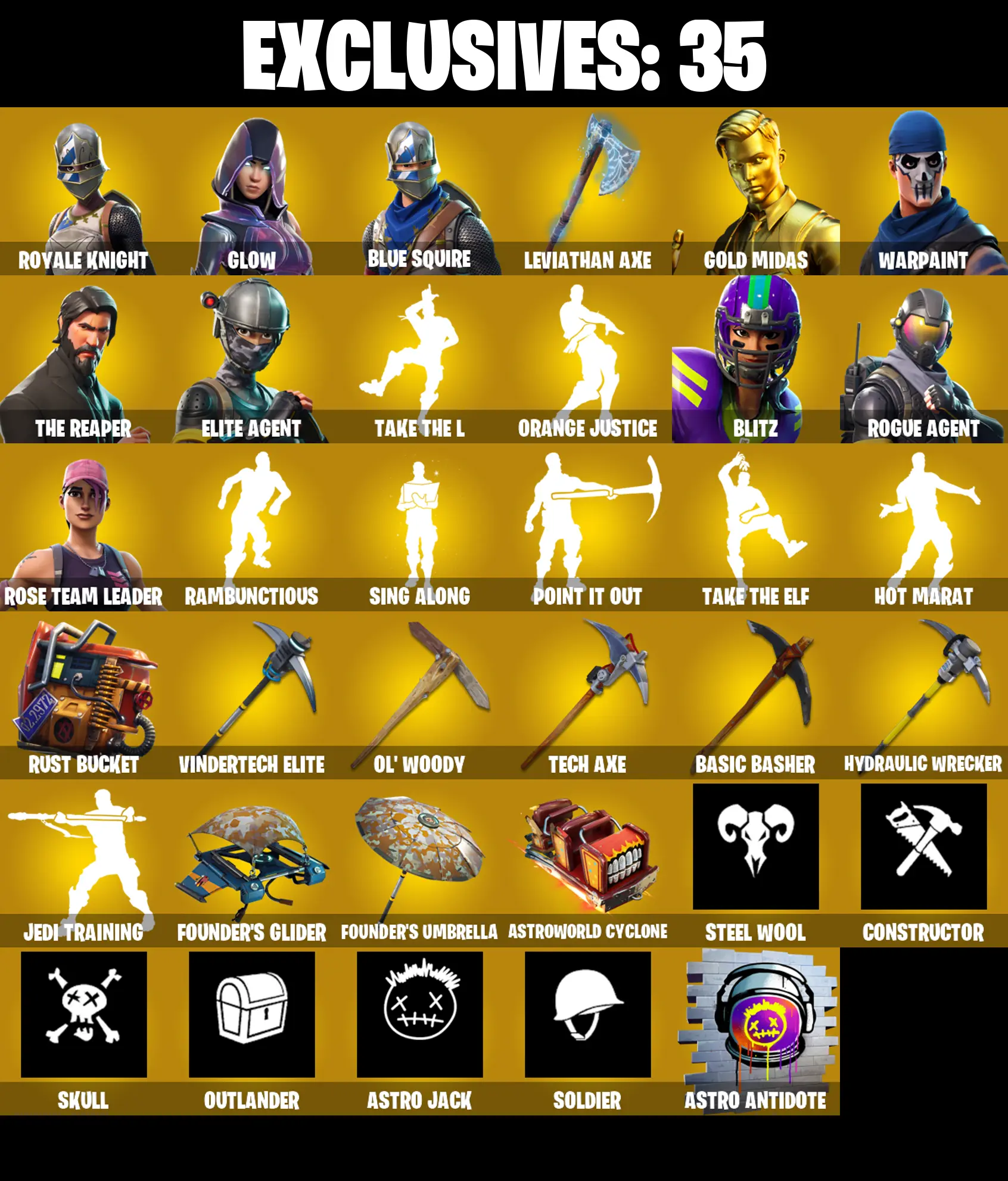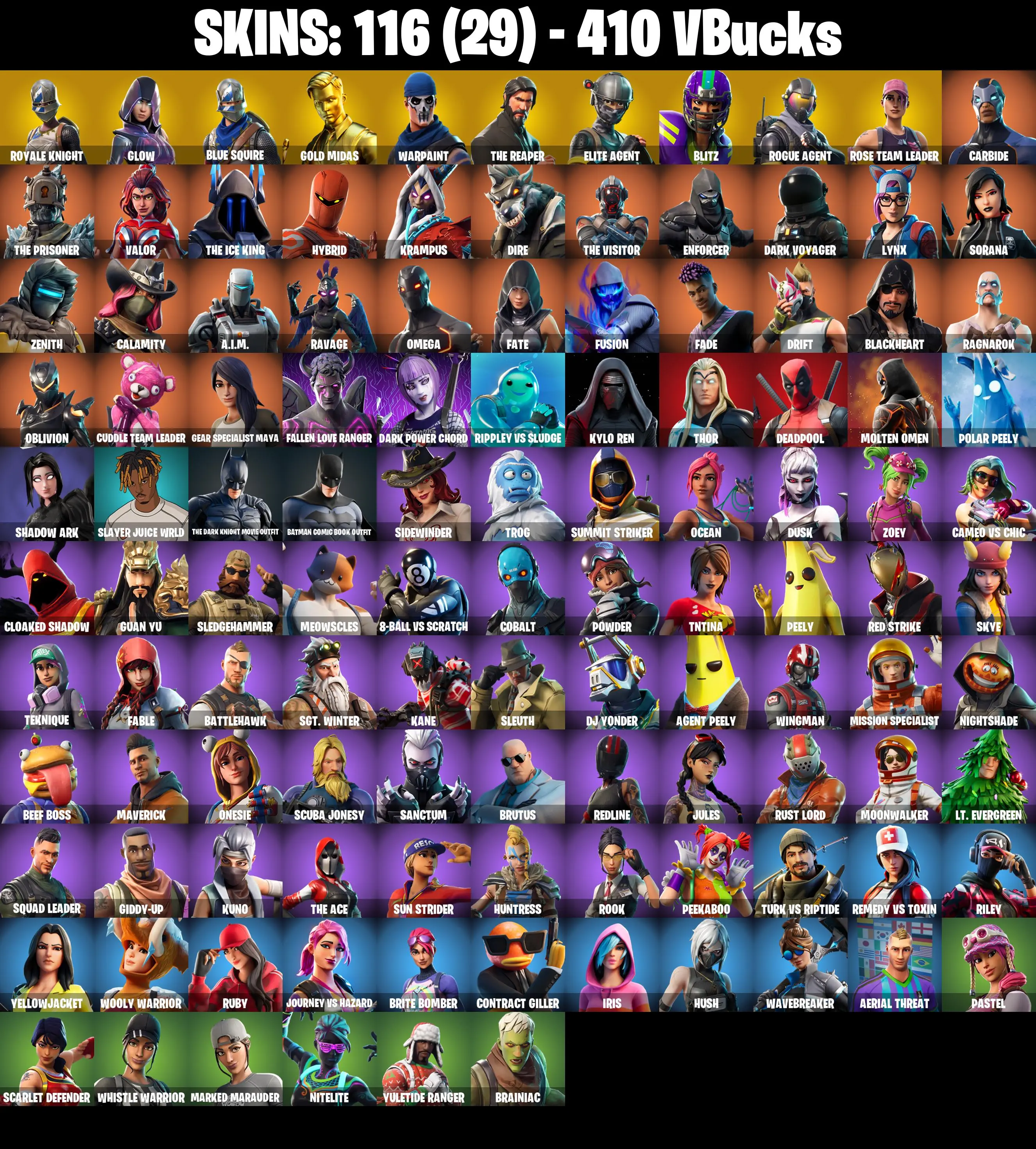 PC/PSN/XBOX ♨️116 skins ✨ OG STW ✨ Royale Knight ✨ Glow ✨ Blue Squire ✨ Leviathan Axe ✨ Deadpool ✨ Gold Midas ✨ The Reaper ✨ Elite Agent ✨ Omega ✨ #B825