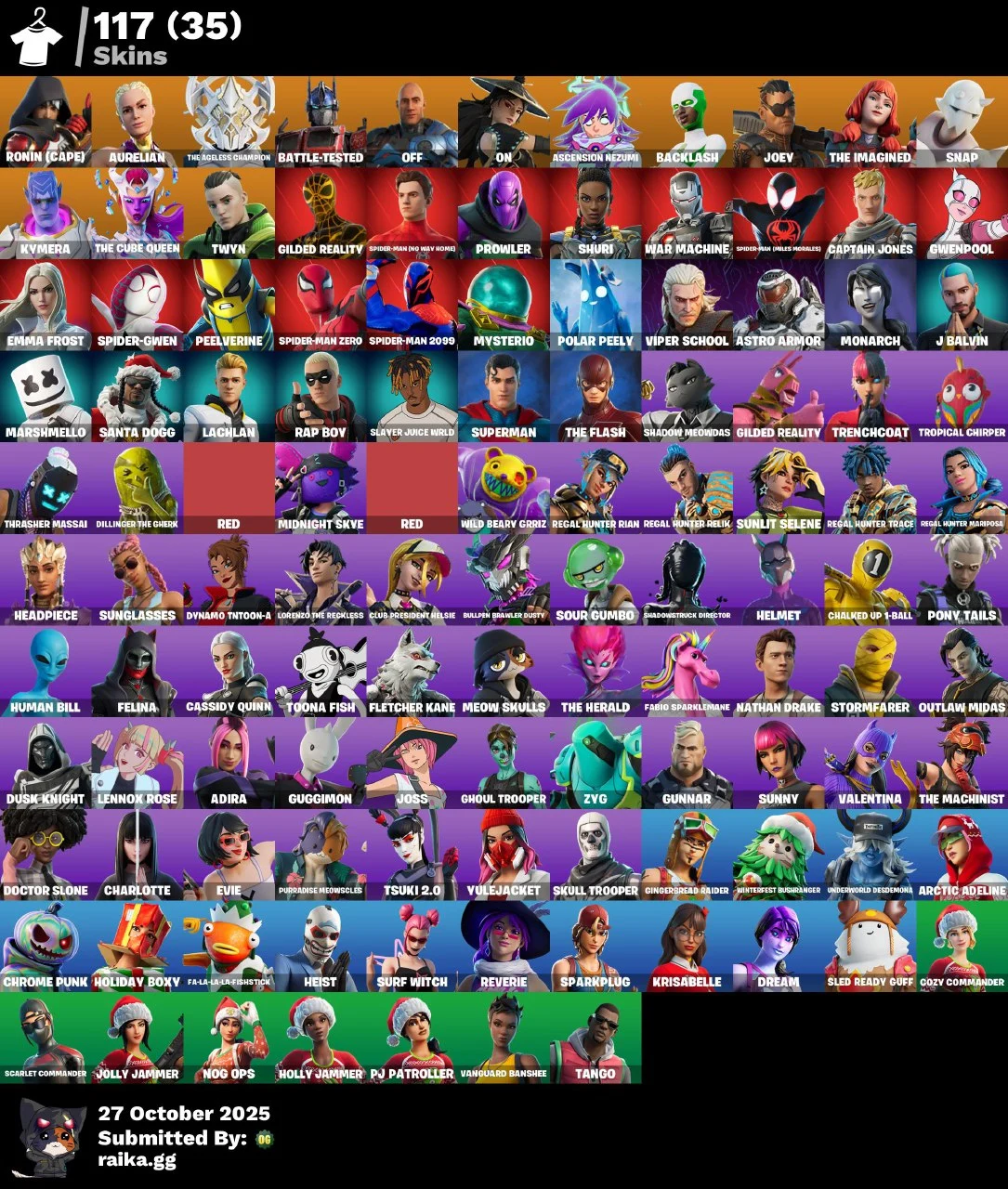 [PC/PSN/XBOX] 117 skins | Ghoul Trooper | Spider-Man (Miles Morales) | Surf Witch | Harley Hitter | Laugh It Up mssh935