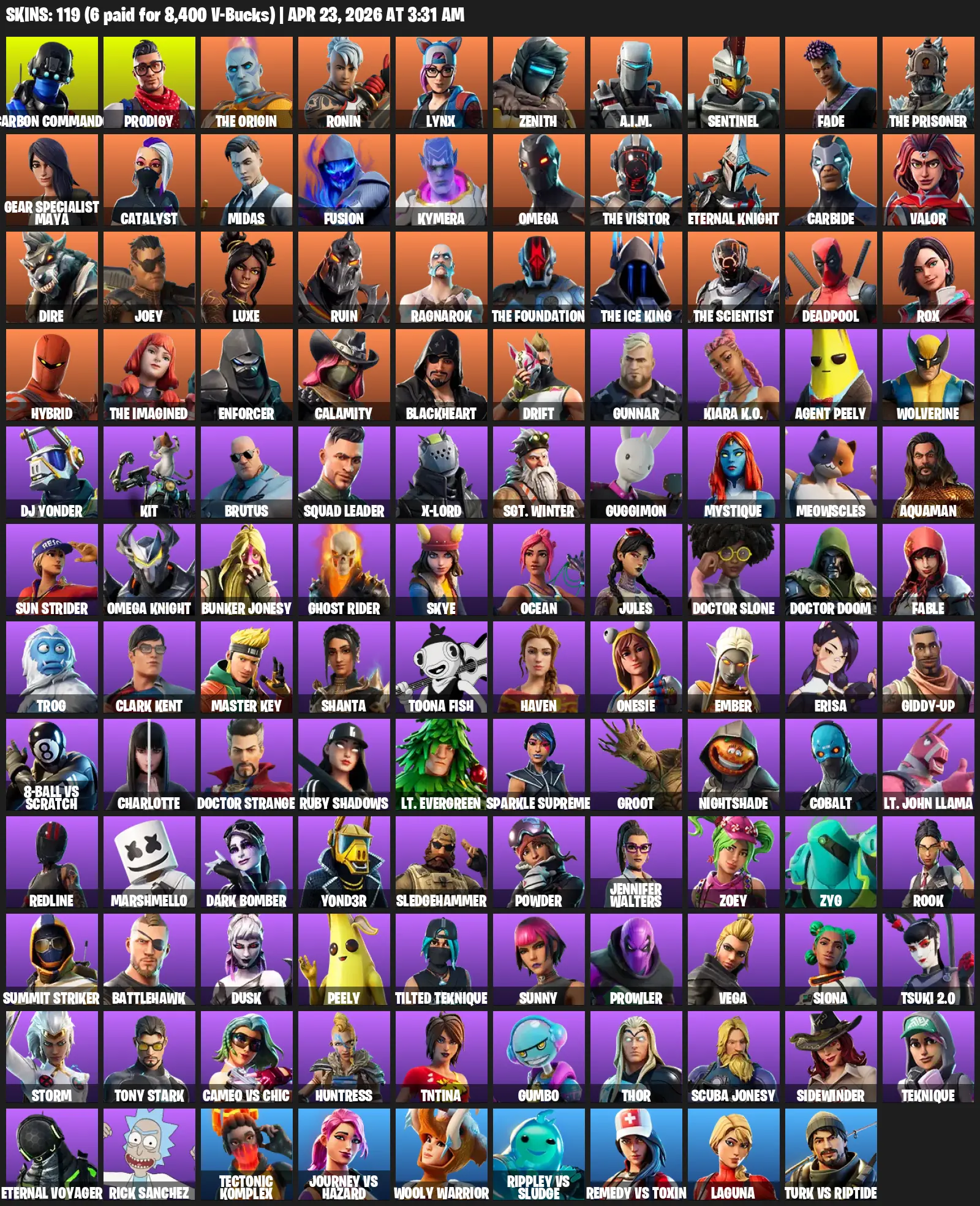 [PC/PSN/XBOX] | 119 skins | 1100 V-bucks | Omega | Carbon Commando | Prodigy | The Origin | Ronin | Lynx | Zenith | A.I.M. | Sentinel | #RFC2669