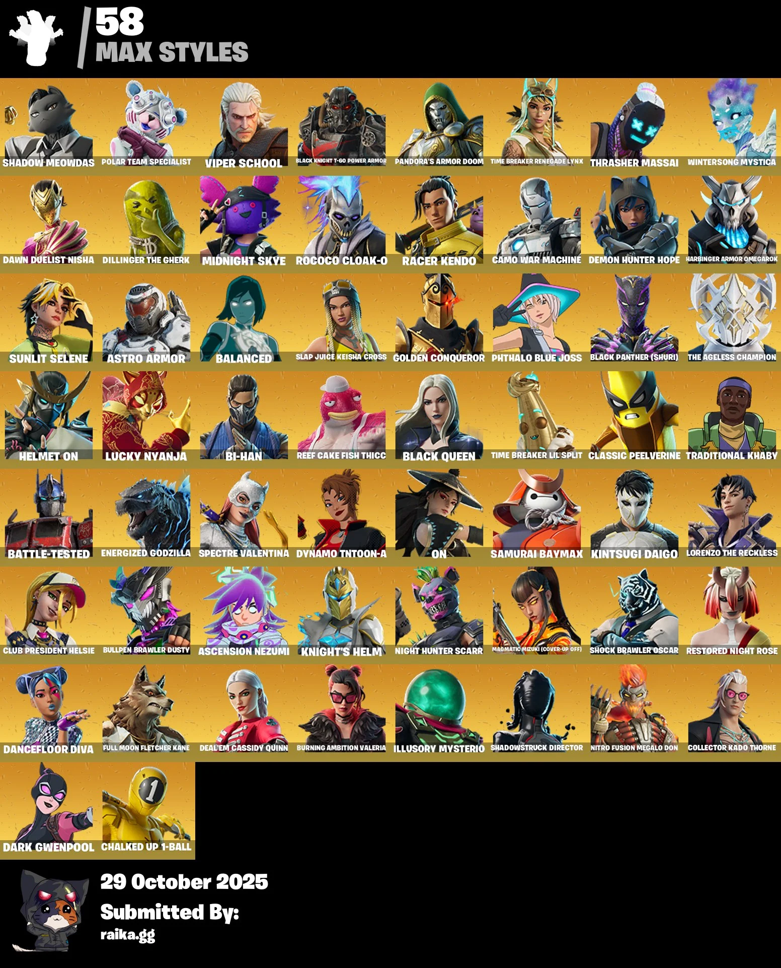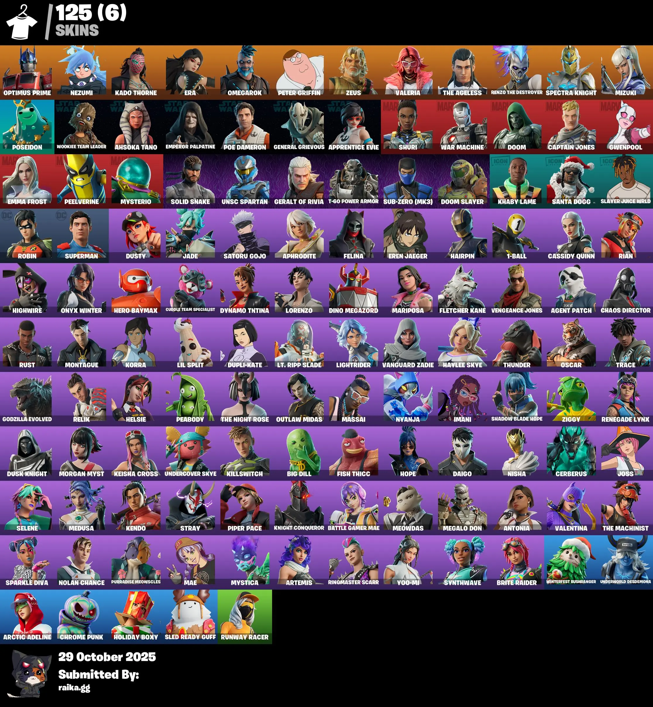 [PC/PSN/XBOX] 125 skins | Optimus Prime | Nezumi | Kado Thorne | Era | Omegarok | Peter Griffin | Zeus | Valeria | The Ageless | Renzo the Destroyer | 1150 VB