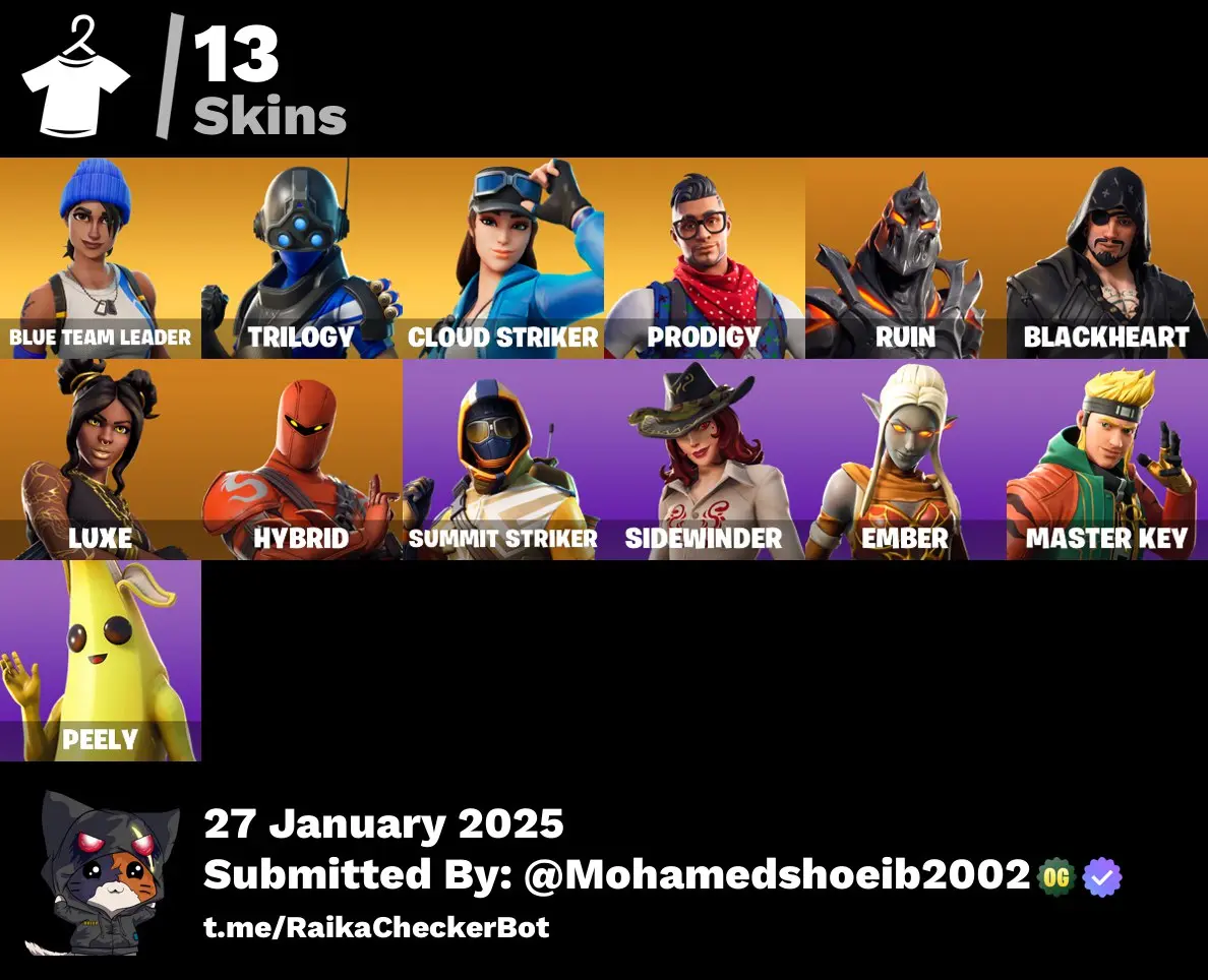 [PC/PSN/XBOX] 13 skins | Blue Team Leader | Trilogy | Cloud Striker | Prodigy | Ruin | Blackheart | Luxe | Hybrid | Summit Striker | Sidewinder | Ember | 350 VB