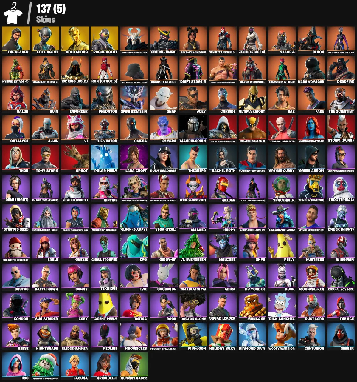 ⭕PC/PSN/XBOX⭕ 137 Skins + The Reaper + Elite Agent + Gold Midas + Rogue Agent + Omega + Drift + Calamity + Laguna + Deadpool + Ghoul Trooper + Crowbar + Take The L + Tidy + Boogie Down + Take The Elf + Orange Justice | 700 V-Bucks |