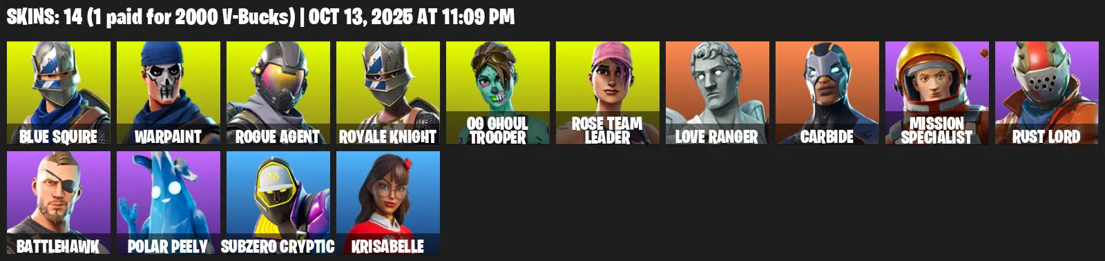 [PC/PSN/XBOX] | 14 skins | Take The L | OG STW | OG Ghoul Trooper | Royale Knight | Blue Squire | Warpaint | Rogue Agent | Rose Team Leader | S4G