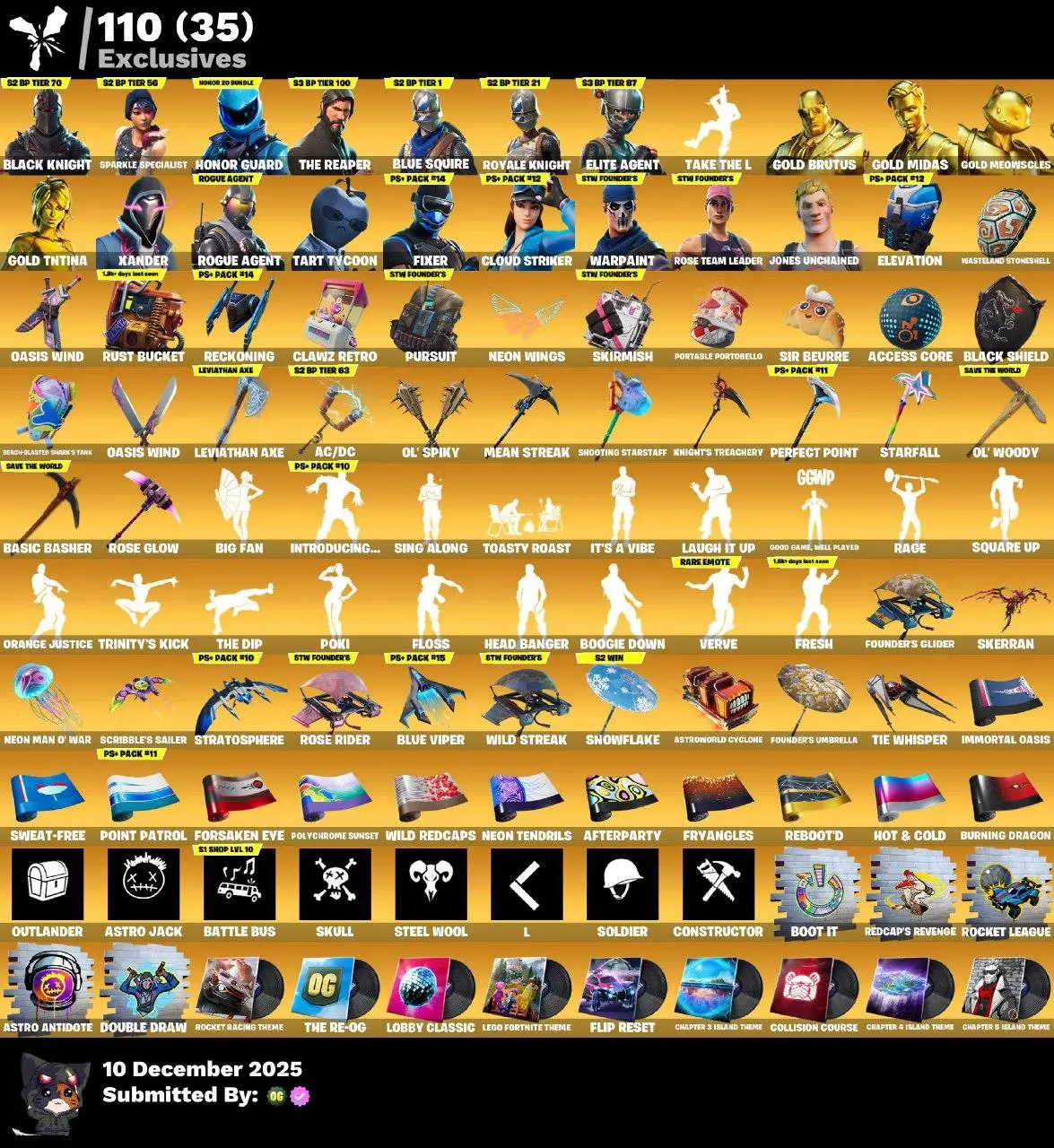 [PC/PSN/XBOX] 140 skins | OG STW | Black Knight | Honor Guard | Leviathan Axe | Take The L | Backlash | Gold TNTina | Jules | 100 VB