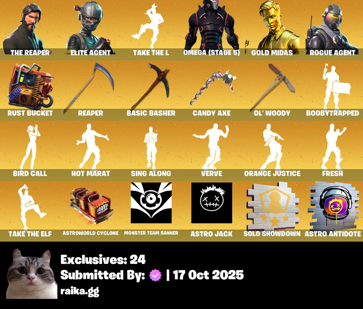 [PC/PSN/XBOX] 141 skins | The Reaper | Elite Agent | Omega (stage 5) | Gold Midas | Rogue Agent | Challenger Menace ⸱ Flame | Harbinger Armor Omegarok