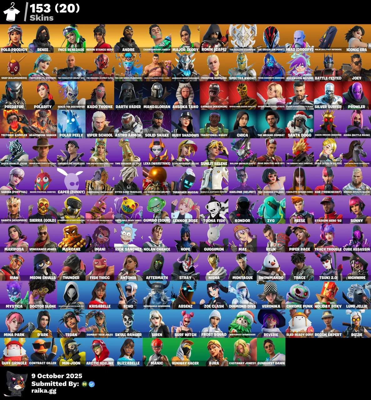 🔥 [PC/PSN/XBOX] 153 skins | Polo Prodigy | Aura | Candy Axe | Surf Witch | Siren | Jabba Switchway | Renee lai072