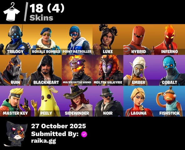 [PC/PSN/XBOX] 17 skins | Blackheart | Hybrid | Carbide | Zenith | Lynx | Ember | Daring Duelist | Battlehawk | Cobalt | Powder | Trog | Sgt. Winter | Onesie | 250 VB