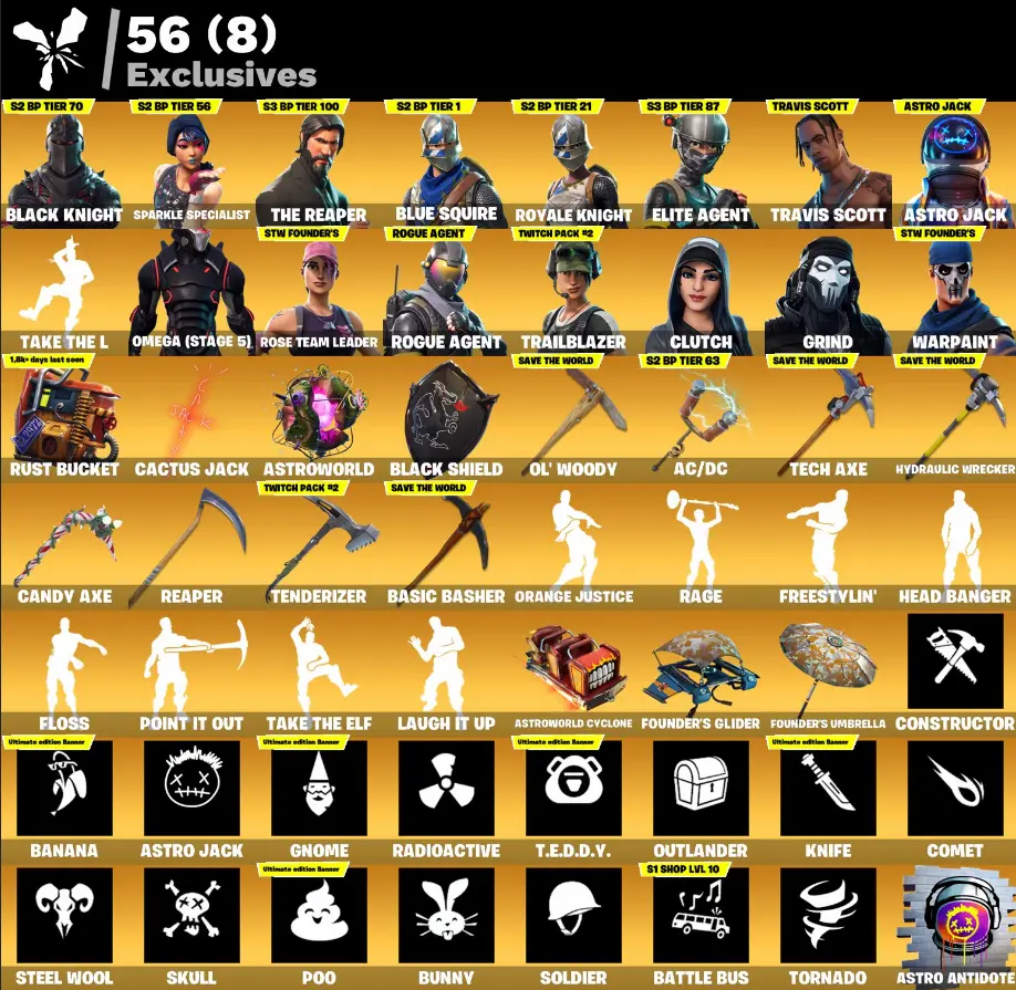 [PC/PSN/XBOX] 🎮 192 Skins | 🛡️ Black Knight | 🏰 OG STW | 🔥 Renegade Raider | ✈️ Aerial Assault Trooper | ✨ Sparkle Specialist | 💀 The Reaper | 🛡️ Blue Squire | 💰 195 V-Bucks