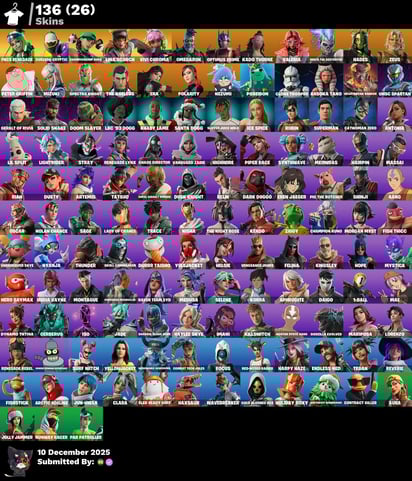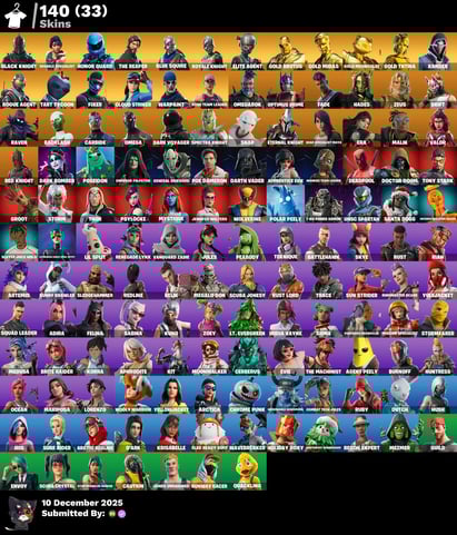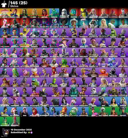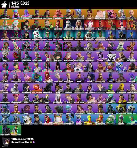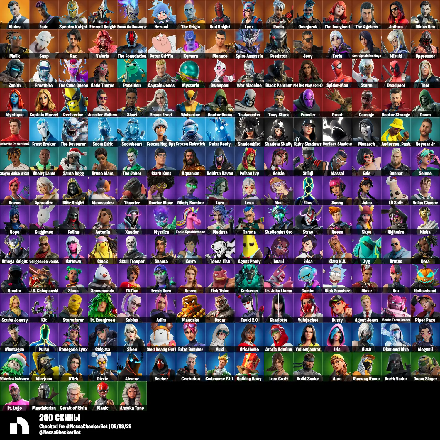 [PC/PSN/XBOX] 200 Skins | 18 MARVEL Skins | Spider-Man | Midas | Lara Croft | Shooting Starstaff | Verve | Astroworld Cyclone | Chigusa | Captain Jones | Helsie | Shinji | Peter Griffin | 400 VB ⸱ PARENTAL CONTROL
