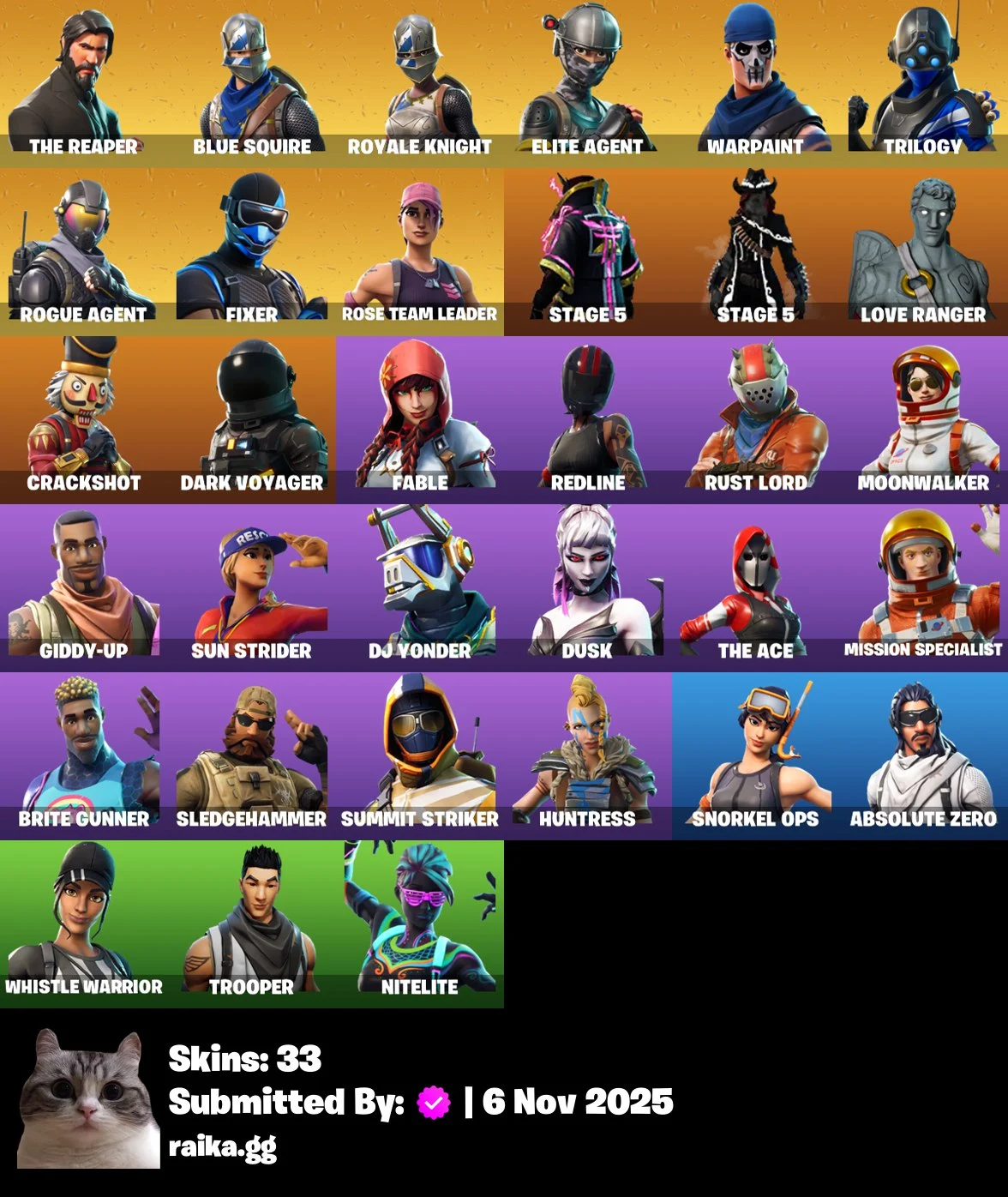 [PC/PSN/XBOX] 33 skins | OG STW | The Reaper | Blue Squire | Royale Knight | Elite Agent | Trilogy | Rogue Agent | Fixer | STAGE 5 | STAGE 5 | Love Ra