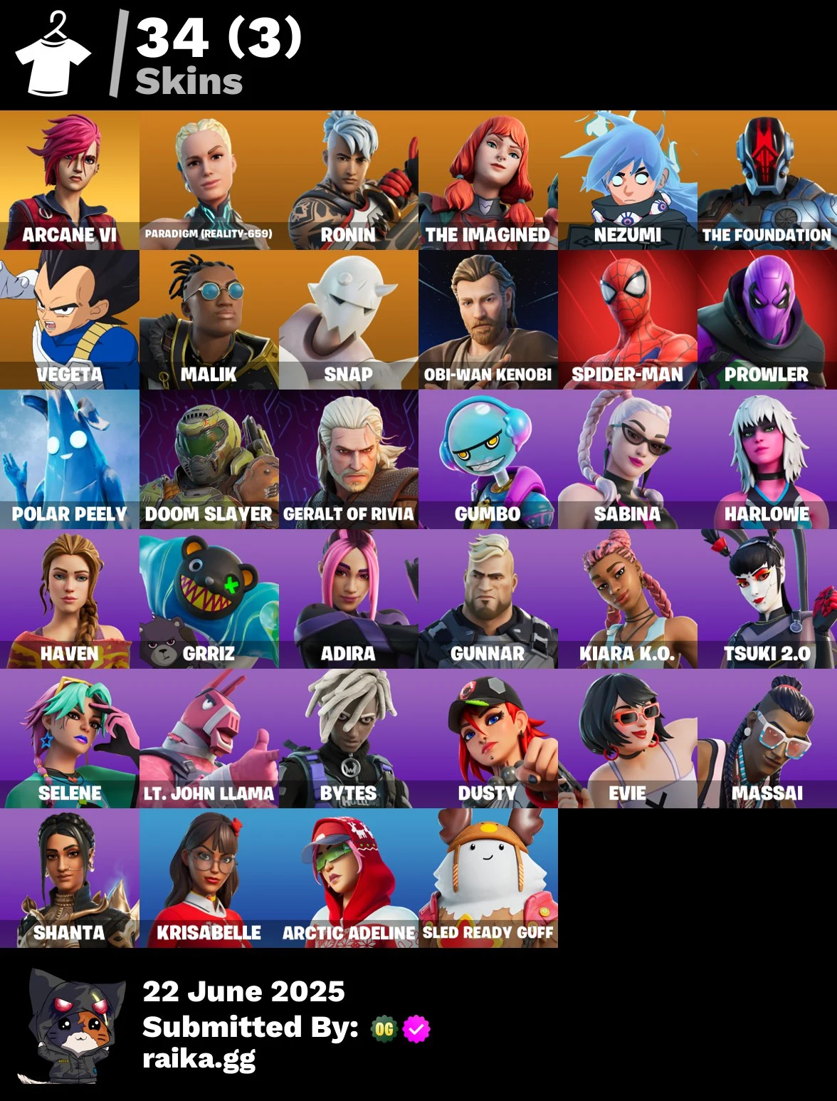 [PC/PSN/XBOX] 34 skins | Arcane Vi | Paradigm (Reality-659) | Ronin | The Imagined | Nezumi | The Foundation | Vegeta | Malik | Snap | Obi-Wan Kenobi | 550 VB