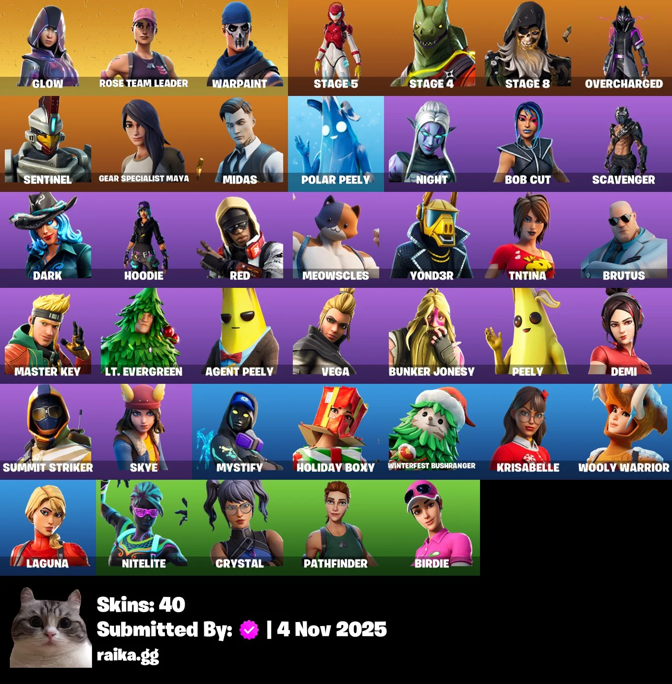 [PC/PSN/XBOX] 40 skins | OG STW | Glow | STAGE 5 | STAGE 4 | STAGE 8 | OVERCHARGED | Sentinel | Gear Specialist Maya | Midas | Polar Peely | NIGHT | B