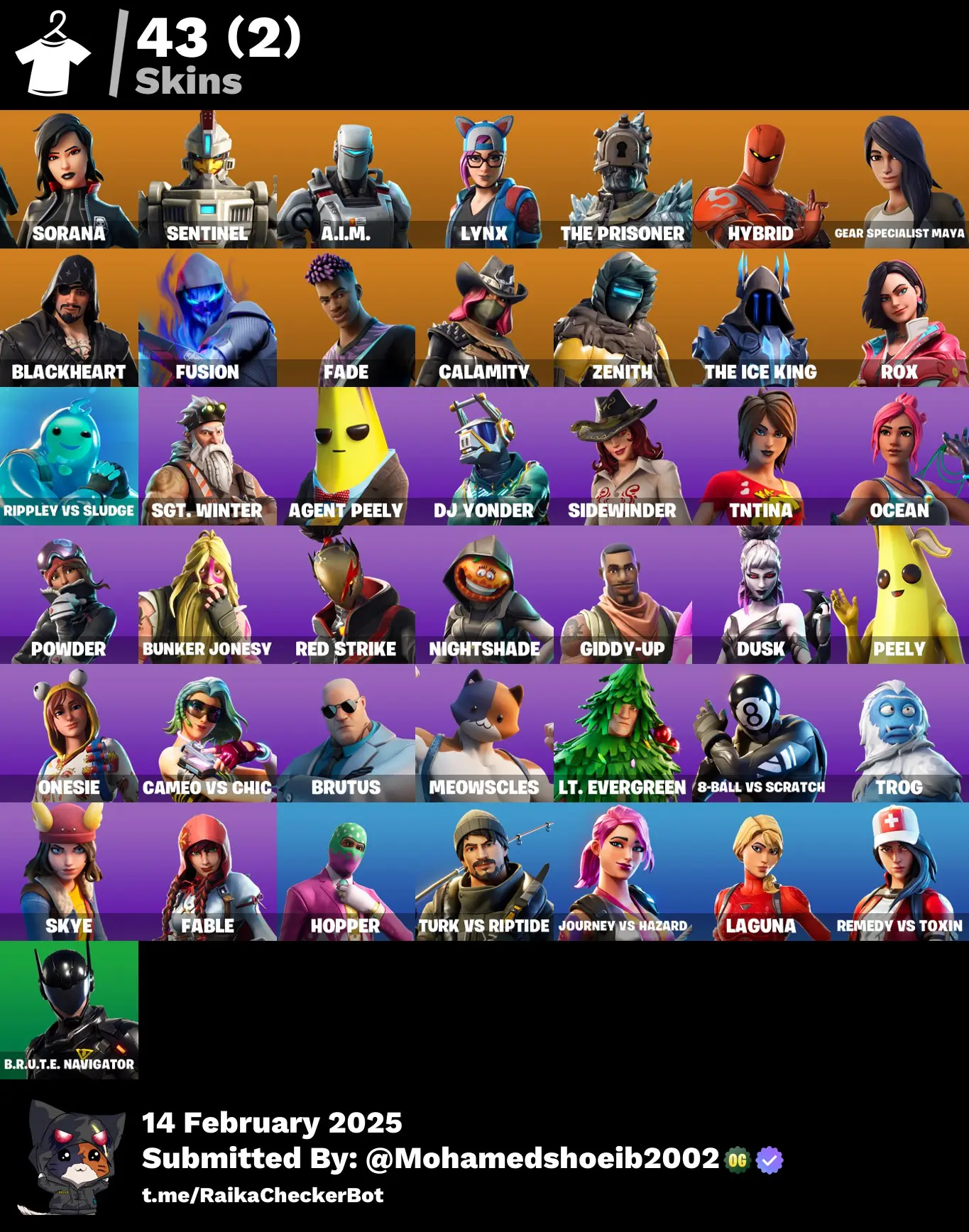 [PC/PSN/XBOX] 43 skins | Sorana | Sentinel | A.I.M. | Lynx | The Prisoner | Hybrid | Gear Specialist Maya | Blackheart | Fusion | Fade | Calamity | Zenith | 1000 VB