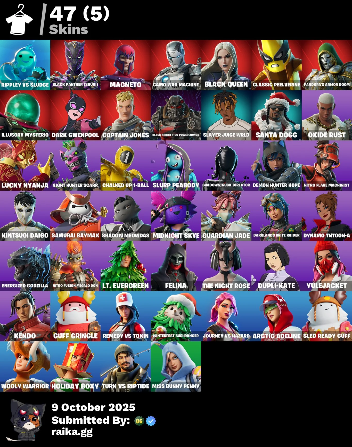 🔥 [PC/PSN/XBOX] 47 skins | Rippley vs Sludge | Black Panther (Shuri) | Magneto | Camo War Machine | Black Queen Bek140